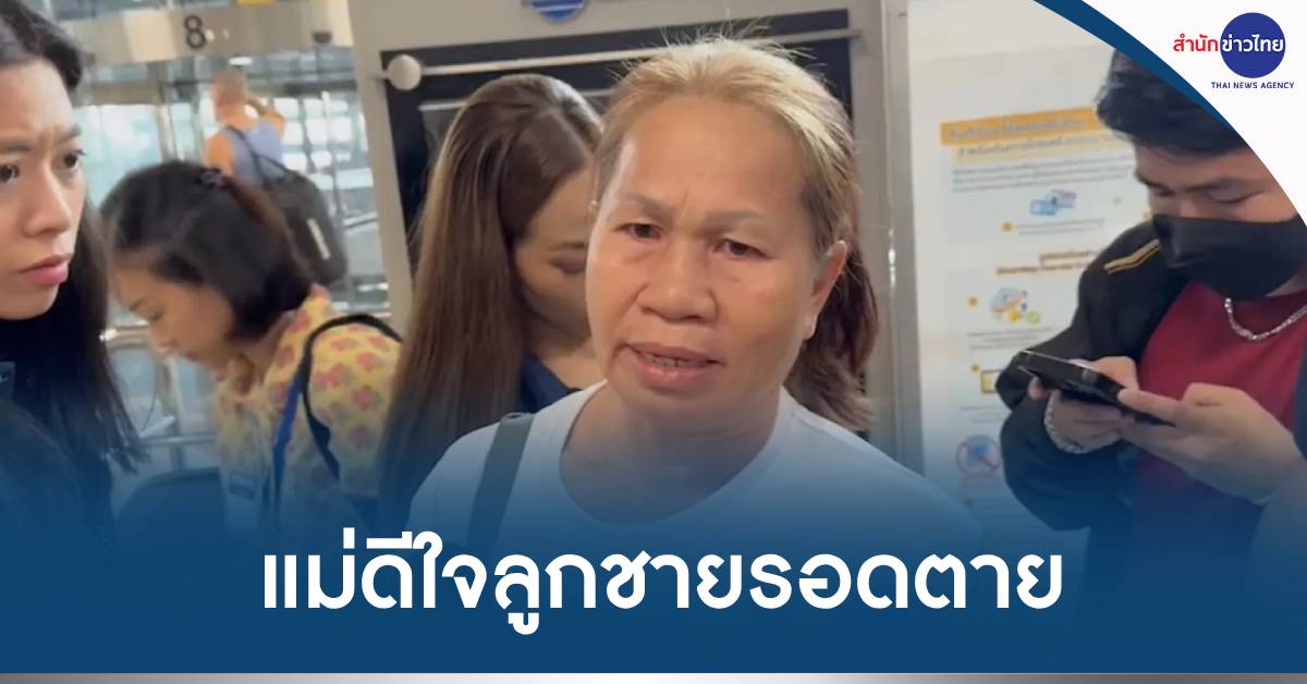 สุวรรณภูมิ 30 พ.ย.-แม่ดีใจลูกชายรอดตาย หลังถูกฮามาสจับเป็นตัวประกันนานกว่า 1 เดือน พาครอบครัวแห่รับที่สุวรรณภูมิ เตรียมแก้บนใหญ่ ไม่ให้กลับไปทำงานแล้ว