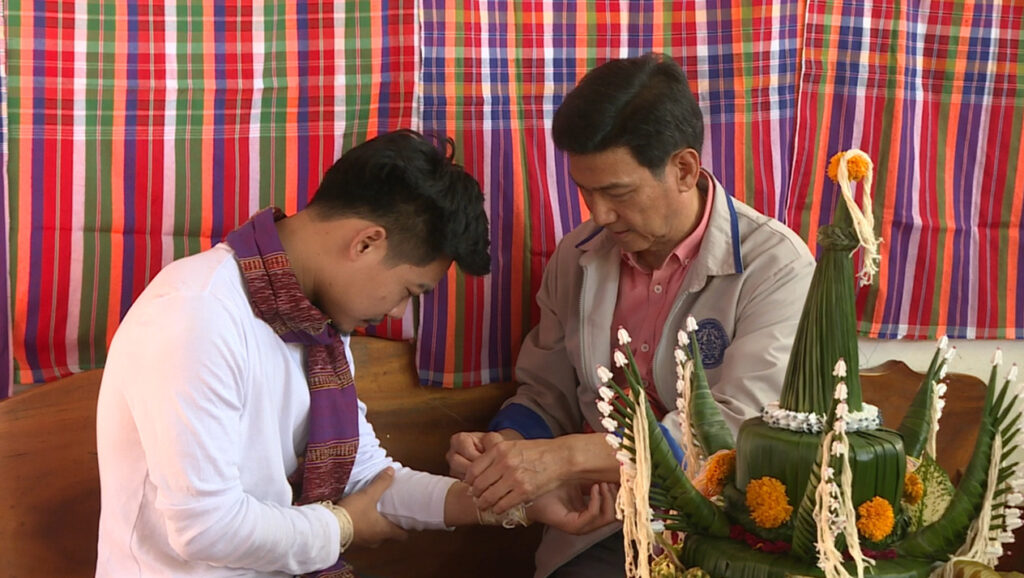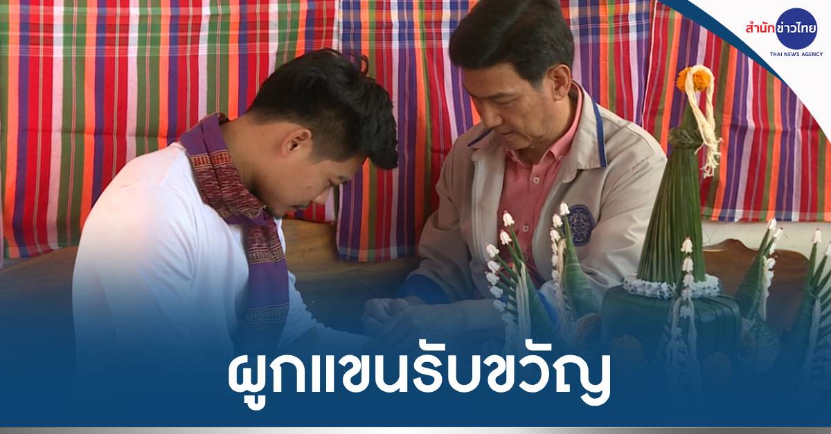 อุดรธานี 3 ธ.ค.-“ปานปรีย์” รมว.ต่างประเทศ เยี่ยมแรงงานไทยถูกจับเป็นตัวประกัน กลับถึงบ้านเกิด อ.กุดจับ จ.อุดรธานี ผูกแขนรับขวัญตามประเพณีอีสาน