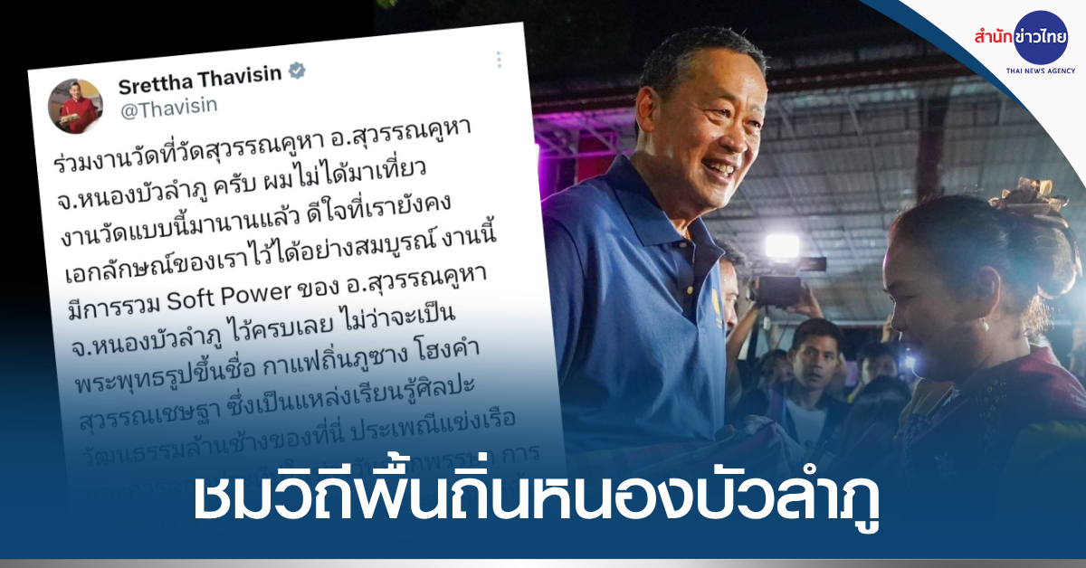 หนองบัวลำภู 3 ธ.ค. – “นายกฯ เศรษฐา” ทวีตปลื้ม Soft Power หลังร่วมงานวัดสุวรรณคูหา จ.หนองบัวลำภู ชื่นชมเป็นประเพณีวิถีพื้นถิ่นที่งดงาม