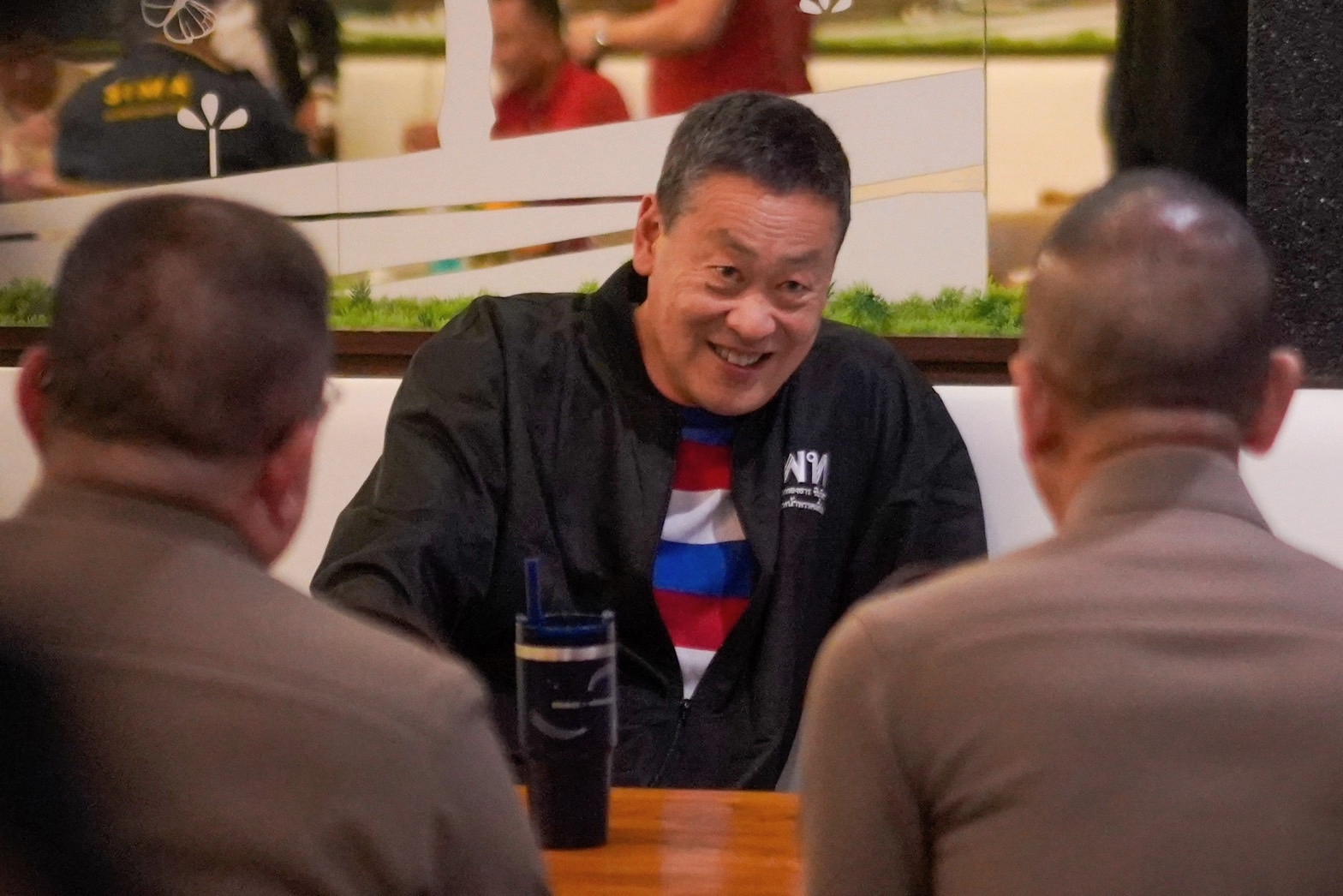 จากนั้น นายเศรษฐาได้เข้าร่วมงานสังสรรค์ของพรรคเพื่อไทย โดยได้ถ่ายรูป พร้อมทักทายแกนนำพรรค สส. และสมาชิกพรรค อย่างเป็นทางการ.-316-สำนักข่าวไทย