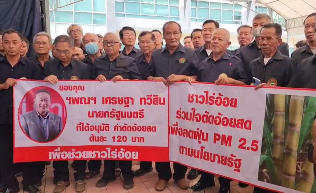 จากนั้นนายกรัฐมนตรีได้พบปะกับพี่น้องเกษตรกรชาวไร่อ้อย เพื่อรับมอบดอกไม้ให้กำลังใจ พร้อมกับขอบคุณนายกรัฐมนตรีที่มาติดตามปัญหาชาวไร่อ้อยในพื้นที่ โดยชาวบ้านยังถือป้ายรอต้อนรับ ระบุว่า “ขอบคุณ ฯพณฯ เศรษฐา ทวีสิน นายกรัฐมนตรี ที่ได้อนุมัติค่าตัดอ้อยสด ตันละ 120 บาท เพื่อช่วยชาวไร่อ้อย” และ“ชาวไร่อ้อยร่วมใจตัดอ้อยสด เพื่อลดฝุ่น PM 2.5 ตามนโยบายรัฐ”