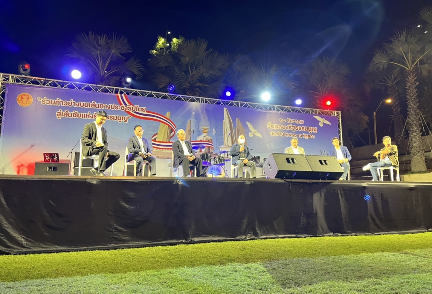 ในการเสวนาหัวข้อ “รัฐธรรมนูญฉบับใหม่หน้าตาเป็นอย่างไร” ซึ่งมีผู้เข้าร่วมเสวนา ได้แก่ นายชัยธวัช ตุลาธน หัวหน้าพรรคก้าวไกล นายชูศักดิ์ ศิรินิล รองหัวหน้าพรรคเพื่อไทย นายราเมศ รัตนะเชวง โฆษกพรรคประชาธิปัตย์ นายนิกร จำนง โฆษกคณะกรรมการเพื่อพิจารณาศึกษาแนวทางในการทำประชามติ เพื่อแก้ไขปัญหาความเห็นที่แตกต่างในเรื่องรัฐธรรมนูญแห่งราชอาณาจักรไทย พ.ศ. 2560 นายพริษฐ์ วัชรสินธุ โฆษกพรรคก้าวไกล และนายยิ่งชีพ อัชฌานนท์ ผู้แทนกลุ่มไอลอว์ โดยมีนายเกรียงไกร หอมจันทร์เทศ เป็นผู้ดำเนินรายการ