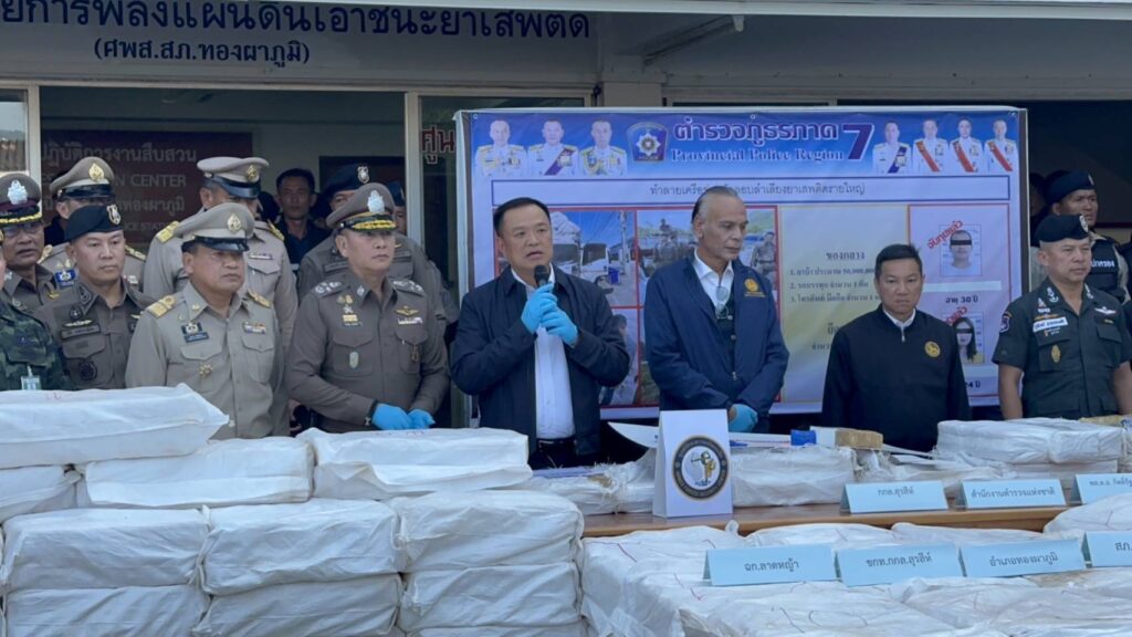 กาญจนบุรี 13 ธ.ค. – “อนุทิน” บินด่วนไป จ.กาญจนบุรี ชื่นชมฝ่ายปกครอง ทหาร ตำรวจ จับยาบ้า 50 ล้านเม็ด