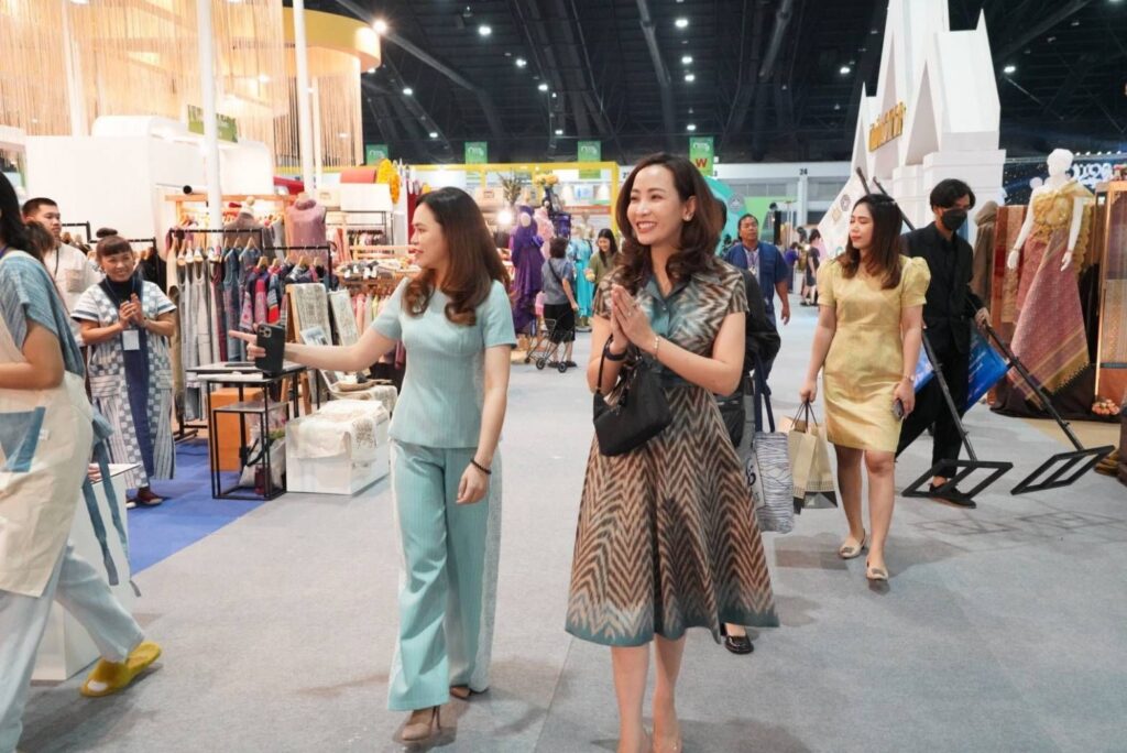 นางสาวไตรศุลี ไตรสรณกุล เลขานุการรัฐมนตรีว่าการกระทรวงมหาดไทยและโฆษกกระทรวงมหาดไทย พร้อมด้วย นางสาวธนนนท์ นิรามิษ ภริยาของ นาย อนุทิน ชาญวีรกูล รองนายกรัฐมนตรีและรัฐมนตรีว่าการกระทรวงมหาดไทย และคณะทำงานรัฐมนตรีว่าการกระทรวงมหาดไทย ร่วมเยี่ยมชมให้กำลังใจและเลือกซื้อผลิตภัณฑ์ OTOP ของผู้ประกอบการในงาน OTOP City 2023 โดยมี นายชัยวัฒน์ ชื่นโกสุม อธิบดีกรมการพัฒนาชุมชน นำเยี่ยมชม