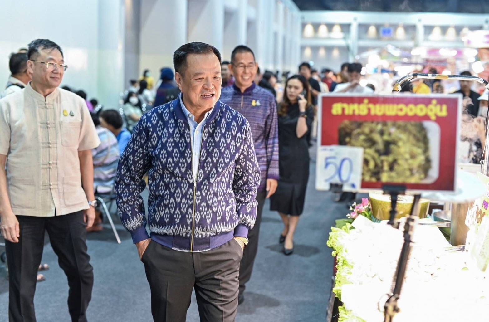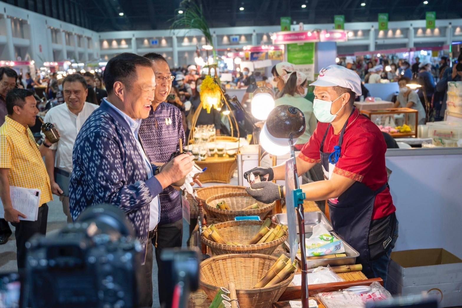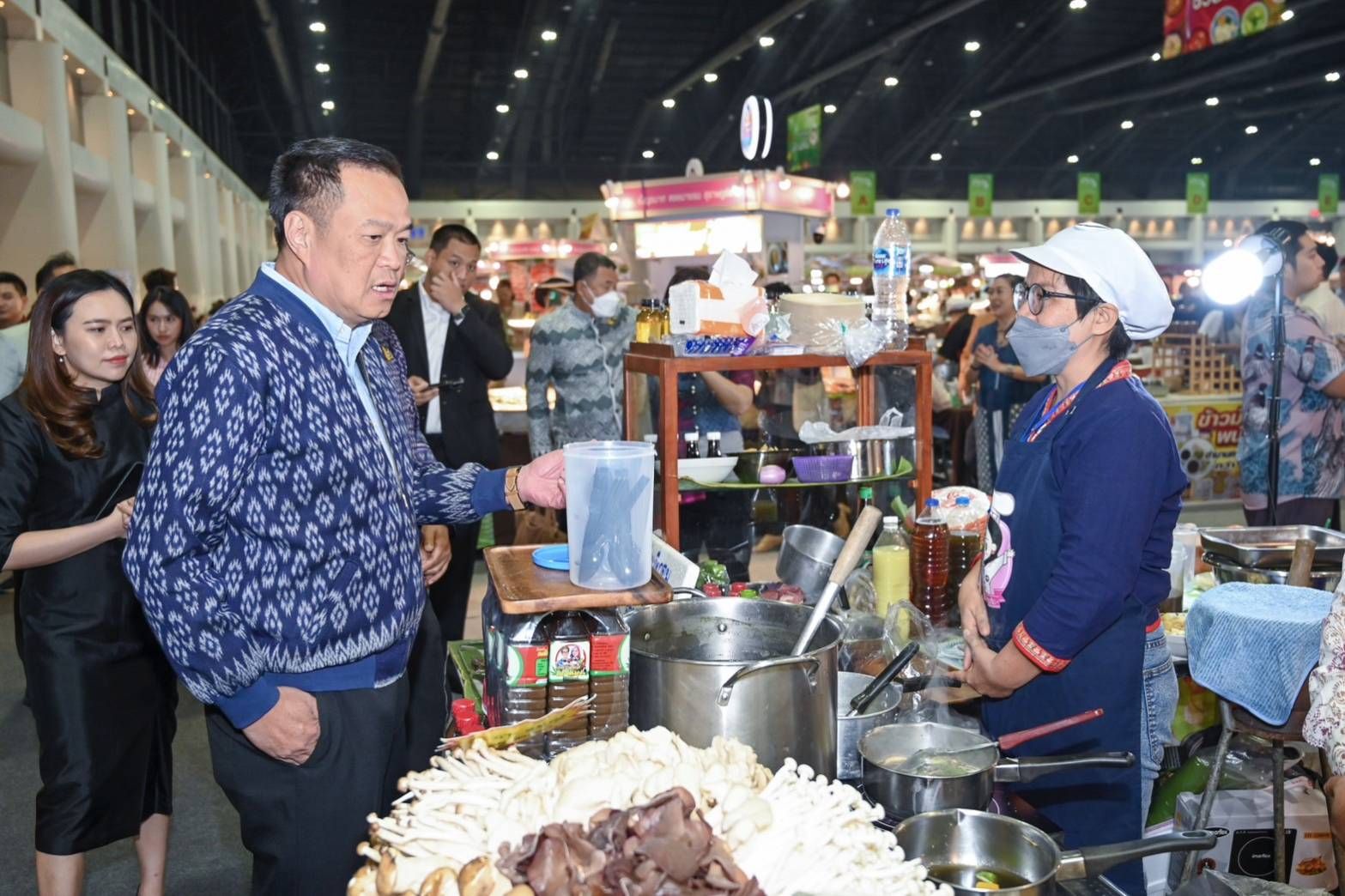 โดยเมื่อเดินทางเข้าสู่บริเวณงาน นายอนุทิน ชาญวีรกูล รองนายกรัฐมนตรีและรัฐมนตรีว่าการกระทรวงมหาดไทย ได้เดินไปยังบริเวณโซน OTOP ชวนชิม แวะซื้อหอยนางรม ร้านเบญจมาศหอยนางรม จังหวัดสุราษฎร์ธานี และก๋วยเตี๋ยวเรือลืมดง ส้มตำยกครก จังหวัดเลย แล้วร่วมรับประทานอาหารกับผู้บริหารระดับสูงในโซน OTOP ชวนชิม