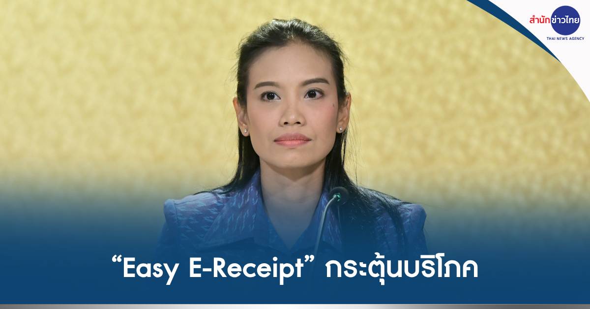 นางรัดเกล้า อินทวงศ์ สุวรรณคีรี รองโฆษกประจำสำนักนายกรัฐมนตรี เปิดเผยว่า มาตรการ “Easy E-Receipt” เพื่อเป็นการสนับสนุนผู้ประกอบการที่อยู่ในระบบภาษีให้ใช้ระบบภาษีอิเล็กทรอนิกส์ รวมถึงส่งเสริมการผลิตสินค้าท้องถิ่นและการอ่าน ส่งเสริมให้ผู้ประกอบการเข้าสู่ระบบภาษี การใช้ระบบภาษีอิเล็กทรอนิกส์ และสนับสนุนการบริโภคในประเทศในช่วงต้นปี 2567