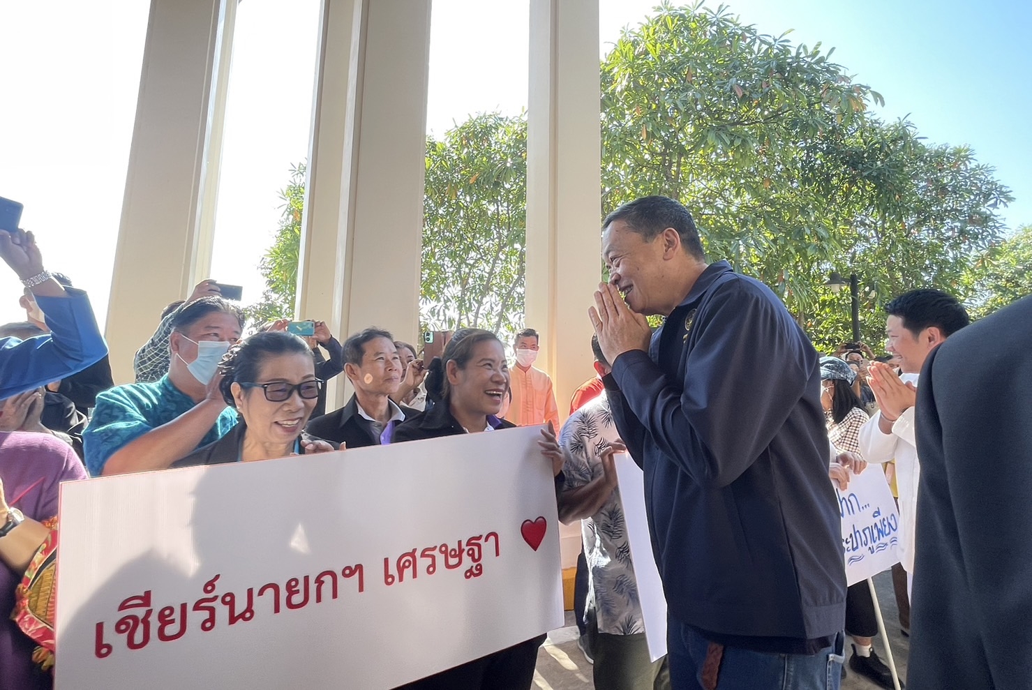 เมื่อเวลา 13.52 น. วันที่ 23 ธ.ค.66 นายเศรษฐา ทวีสิน นายกรัฐมนตรีและรัฐมนตรีว่าการกระทรวงการคลัง และคณะ เดินทางถึงศาลากลางจังหวัดน่าน ด้วยรถยนต์โตโยต้า อัลพาร์ด ทะเบียน กฉ 5353 น่าน โดยมีประชาชนจำนวน 200 คน รอให้การต้อนรับ พร้อมถือป้ายข้อความระบุว่า รักนายกฯ นิดๆ แต่จะฮักนายกฯ นานๆ, ขอให้ท่านนายกฯ มีสุขภาพแข็งแรง อยู่แก้ปัญหาและบริหารประเทศไปนานๆ รักท่านครับ, หมู่เฮาจาวเวียงสา ขอต้อนฮับท่านนายกฯ, +1 โครงการดีแก้ไขปัญหาหนี้นอกระบบ นายกสู้ๆ, นายกฯ เศรษฐาสู้ๆ เพื่อประชาชน, Love นายกฯ, FC นายกฯ, คนน่านขอบคุณนายกรัฐมนตรีที่ช่วยแก้ปัญหาหนี้นอกระบบ, พวกเราคนภูเพียงสนับสนุนนายกฯ เศรษฐา, เรารักนายกฯ เศรษฐา เป็นต้น โดยนายกฯ ได้เดินทักทายประชาชน ขณะที่ในช่วงหนึ่ง ชาวบ้านได้ตะโกนบอกว่า “ยังรอเงินดิจิทัลอยู่นะครับ” ซึ่งนายกฯ ตอบกลับว่า “ครับ”