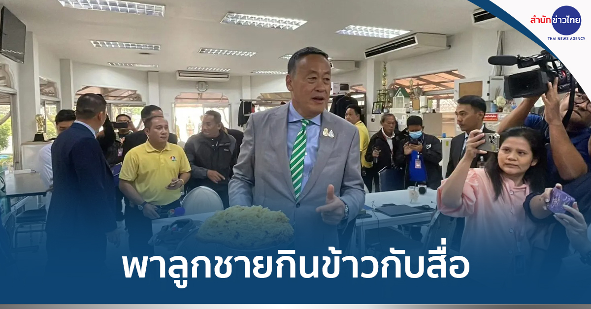 ทำเนียบรัฐบาล 25 ธ.ค.- นายกฯ เยี่ยมสื่อที่รังนกกระจอก “วันคริสต์มาส” พร้อมโชว์ถุงเท้าเขียว-แดง เผย เย็นนี้พาลูกชาย 2 คนมาร่วมทานข้าวกับสื่อด้วย