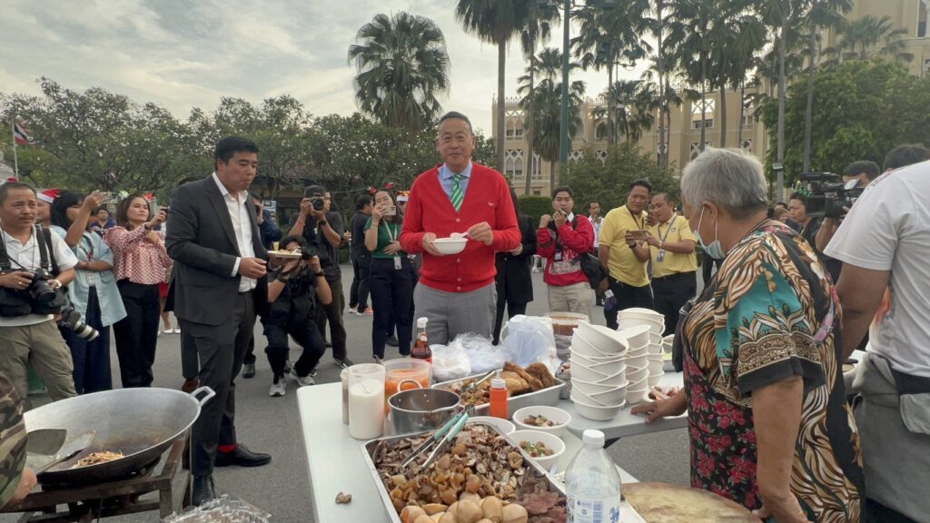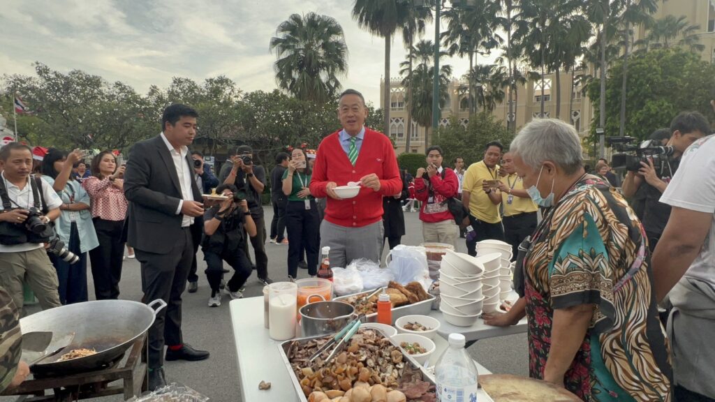 โดยเมื่อนายกฯลงมาจากตึกไทยคู่ฟ้าได้ไปลงทะเบียนเข้าร่วมงาน จากนั้นเดินเยี่ยมชมบูธอาหารต่างๆ พร้อมลองชิมอาหาร เช่น ข้าวหมูแดง ข้าวมันไก่ กระเพาะปลา หมูสะเต๊ะ เป็นต้น ระหว่างร่วมกิจกรรมนายกฯได้ลองใส่คาดผมกวางเรนเดียร์และยกมือทำท่ากวางอย่างอารมณ์ดี ก่อนเดินขึ้นตึกไทยคู่ฟ้า ไปเปลี่ยนชุดเป็นเสื้อสีเขียว กางเกงสีแดง แจ็คเก็ตสีเขียวขี้ม้า และร่วมถ่ายรูปกับสื่อมวลชน ประจำทำเนียบรัฐบาล หน้าตึกไทยคู่ฟ้าอย่างเป็นกันเอง