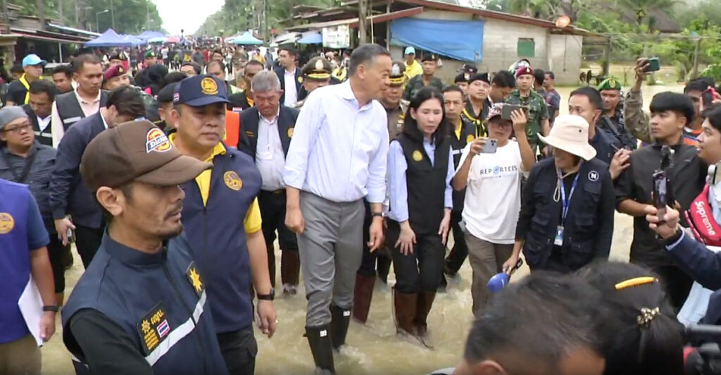 นราธิวาส 26 ธ.ค.- “นายกฯ เศรษฐา” ใส่บูทลุยน้ำเยี่ยมผู้ประสบอุทกภัย อ.ระแงะ จ.นราธิวาส ลั่นยังไว้ใจไม่ได้แม้ฝนหาย เล็งปรับระบบเตือนภัย ป้องกันเหตุซ้ำซาก วอนประชาชนเชื่อคำประกาศรัฐ บอกไม่อยากมาในช่วงวิกฤติ แต่อยากมาดูแลการค้า