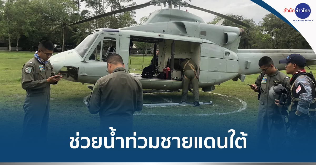 กองทัพอากาศ 28 ธ.ค. -ผบ.ทอ.กำชับกำลังพลเร่งช่วยเหลือปชช.ที่ได้รับผลกระทบน้ำท่วม 3 จังหวัดชายแดนใต้ หนุนฮ.ส่งจนท.โรยตัวลงช่วยชาวบ้าน