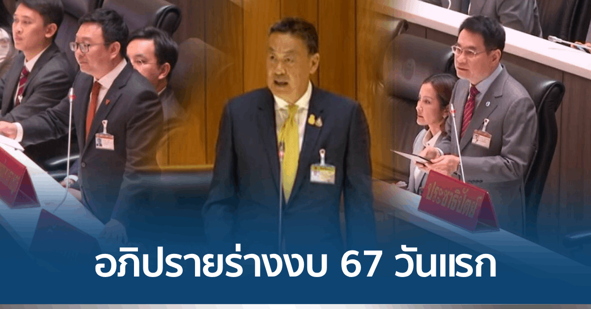 รัฐสภา 3 ม.ค. – การประชุมสภา เพื่ออภิปราย ร่าง พ.ร.บ.งบประมาณรายจ่าย ปี 67 จำนวน 3.48 ล้านล้าน วันนี้วันแรก ฝ่ายค้านจัดหนักอภิปรายระบุไม่ตรงกับที่หาเสียง ไม่มีแผนงาน สะท้อนการวางแผนงบเลื่อนลอย .-สำนักข่าวไทย