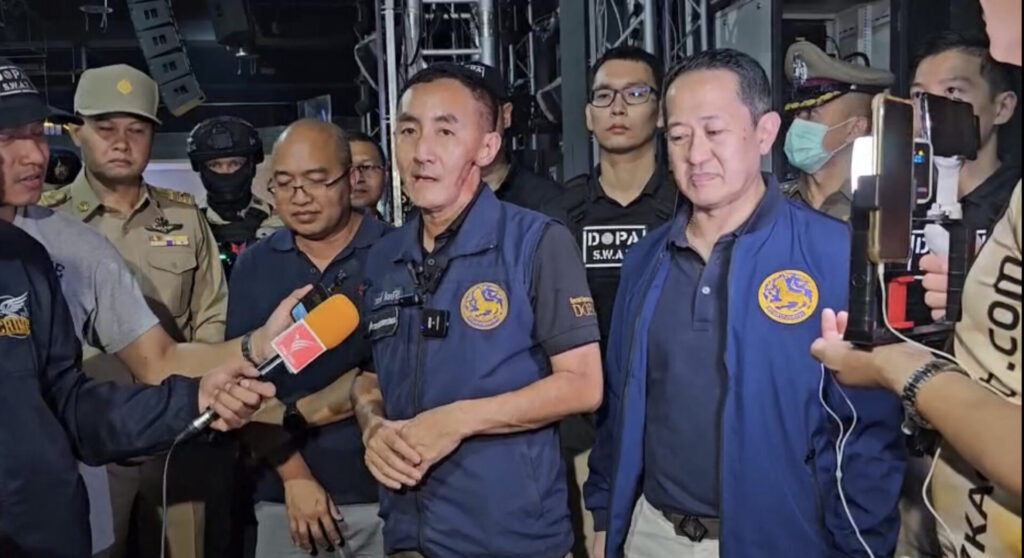 “เมื่อพนักงานฝ่ายปกครองทำการสืบสวนข้อเท็จจริงจน พบว่ามีการกระทำผิดจริงตามข้อร้องเรียน ต่อมาเวลา 00.30 น. ของวันที่ 7 มกราคม 2567 จึงได้สนธิกำลังร่วมกับเจ้าหน้าที่ตำรวจ และเจ้าหน้าที่กรมพินิจและคุ้มครองเด็กและเยาวชน และหน่วยงานที่เกี่ยวข้อง เปิดปฏิบัติการจู่โจมสถานบันเทิงนี้ทันที เมื่อชุดจับกุมเข้าไปถึงภายในสถานบริการดังกล่าว พบเป็นห้องโถงขนาดใหญ่มีการแสดงดนตรีสดอย่างเมามัน นักเที่ยวที่กำลังอยู่ในอาการมึนเมาต่างตื่นตกใจ พยายามหาทางหนีการตรวจค้นของเจ้าหน้าที่ แต่เจ้าหน้าที่ชุดจับกุมควบคุมพื้นที่ ปิดล้อม วางกำลังไว้ทั่วทุกทางเข้า-ออก ทำให้นักเที่ยวไม่สามารถหนีออกไปได้ พนักงานฝ่ายปกครองจึงสั่งให้ปิดเพลงและเปิดไฟให้แสงสว่าง และได้ประกาศให้ทุกคนอยู่ในความสงบ” นายอรรษิษฐ์ กล่าว
