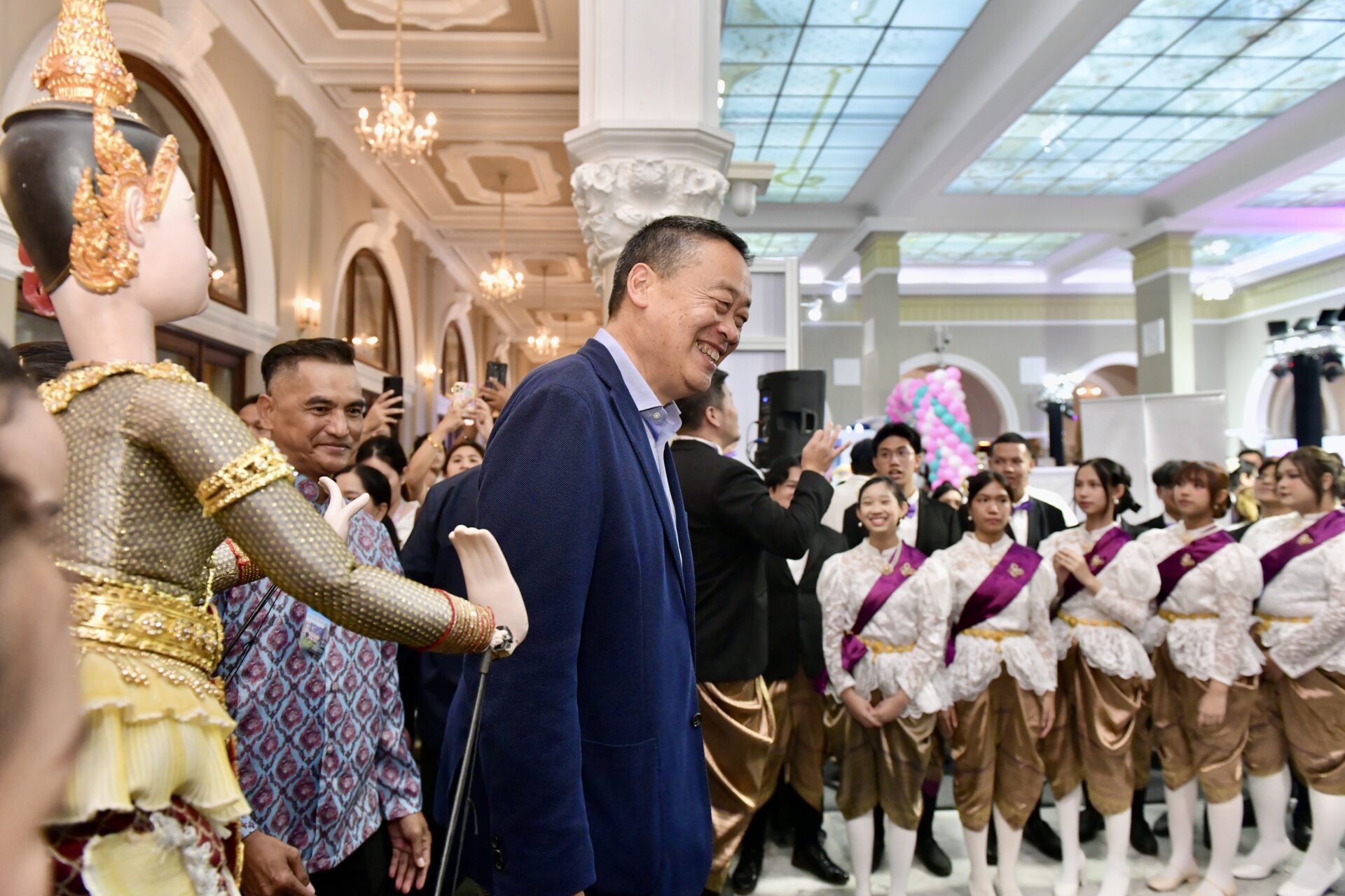 โดยก่อนการเปิดงาน นายกรัฐมนตรีได้เดินทางเข้าตึกไทยคู่ฟ้า เพื่อทักทายเยาวชนผู้มีความสามารถและเยาวชนผู้ด้อยโอกาสที่ได้รับการคัดเลือกจากกระทรวงการพัฒนาสังคมและความมั่นคงของมนุษย์ (พม.) จำนวน 10 คน พร้อมมอบของที่ระลึกและถ่ายภาพร่วมกันบนที่นั่งเก้าอี้ทำงานของนายกรัฐมนตรี ณ ห้องสีม่วง