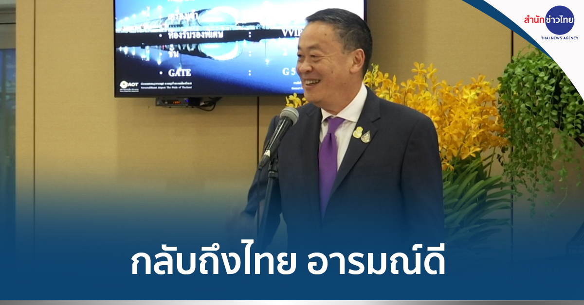 ผู้สื่อข่าวรายงานว่า นายกรัฐมนตรี เดินทางกลับถึงประเทศไทย อย่างอารมณ์ดี โดยหยอกล้อกับสื่อมวลชนด้วยการแกล้งเดินเลยไมค์ ก่อนเดินกลับมาให้สัมภาษณ์สื่อมวลชน ทั้งนี้ภายหลังสัมภาษณ์เสร็จสิ้น นายกรัฐมนตรี เผยว่า วันที่จะเดินทางไปเยี่ยมมารดา ที่ป่วยอยู่โรงพยาบาล ก่อนที่จะเดินทางเข้าทำเนียบรัฐบาล ผู้สื่อข่าวถามว่า เหมือนนายกฯ ไม่สบาย เสียงหาย นายเศรษฐา ระบุว่า เป็นหวัดนิดหน่อย.-316.-สำนักข่าวไทย