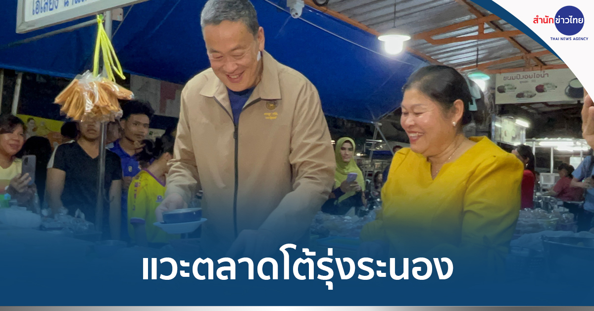 เมื่อเวลา 19.40 น. วันที่ 22 ม.ค. ตลาดโต้รุ่งระนอง อ.เมือง จ.ระนอง นายเศรษฐา ทวีสิน นายกรัฐมนตรีและรมว.คลัง พร้อมด้วย นายภูมิธรรม เวชยชัย รองนายกรัฐมนตรีและรมว.พาณิชย์ นายอนุทิน ชาญวีรกูล รองนายกรัฐมนตรีและรมว.มหาดไทย และภริยา นายสุริยะ จึงรุ่งเรืองกิจ รมว.คมนาคม น.ส.ศุภมาส อิศรภักดี รมว.การอุดมศึกษา วิจัย และนวัตกรรม นายเสริมศักดิ์ พงษ์พานิช รมว.วัฒนธรรม นางมนพร เจริญศรี รมช.คมนาคม ได้แวะร้านน้ำเต้าหู้ ซ.2 โดยนายกฯ สั่งปาท่องโก๋ นมข้นหวาน ขนมปัง สังขยาใบเตย และเต้าฮวยน้ำขิง โดยทั้งหมดร่วมรับประทานและพูดคุยหัวเราะกันอย่างสนุกสนาน