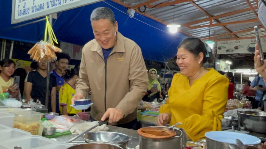 ระนอง 22 ม.ค.- ‘เศรษฐา’ ซดน้ำเต้าฮวยร้านดังระนอง ก่อนโชว์ปรุงน้ำเต้าหู้ให้ชาวบ้าน ยิ้มร่าหลังถูกถามเงินดิจิทัลได้เมื่อไหร่ ก่อนยกนิ้วโป่งให้