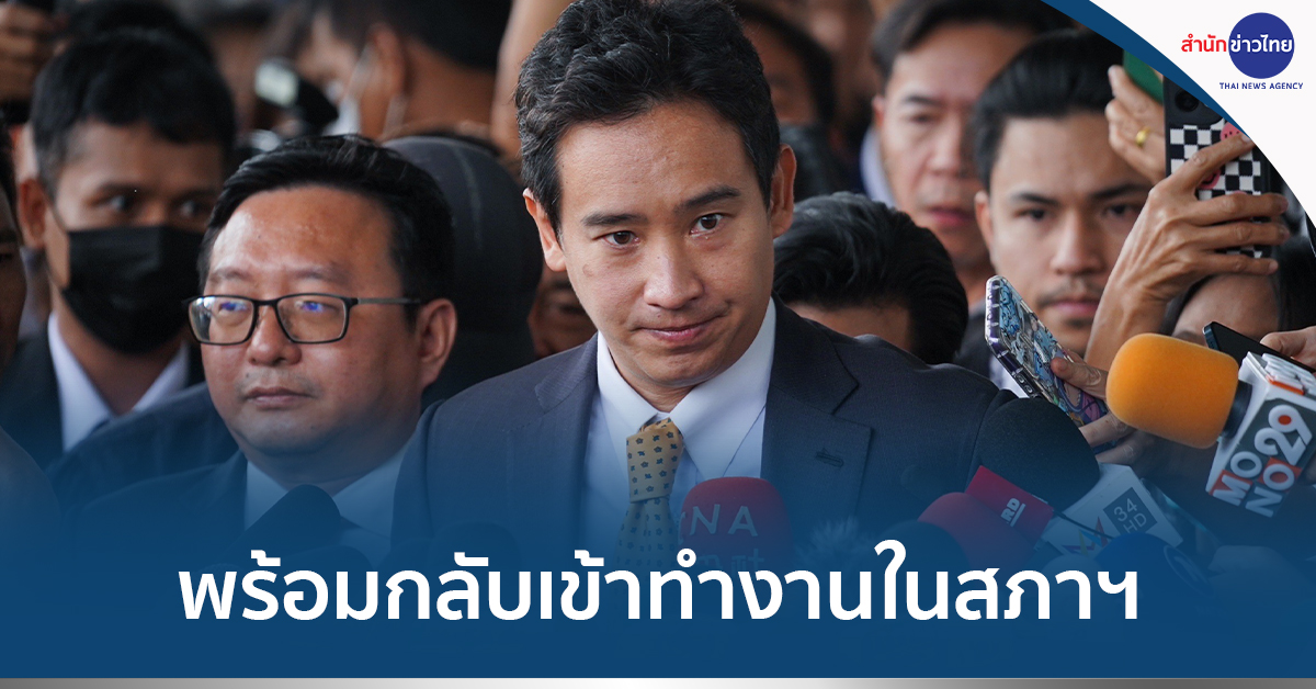 “ส่วนจะกลับเข้าสภาฯ เมื่อไหร่ จะให้คณะกรรมการประสานงานพรรคร่วมฝ่ายค้าน(วิปฝ่ายค้าน) หารือกับประธานสภาฯ อีกครั้งว่าเข้าไปปฏิบัติหน้าที่ได้เมื่อไหร่ โดย ให้ฝ่ายกฎหมายของพรรคตรวจสอบว่าคำวินิจฉัยที่ประกาศต่อสาธารณชนแล้ว จะมีความผูกพันต่อสององค์กรแค่ไหน ซึ่งเมื่อเข้าสภาฯ แล้วจะทำหน้าที่สส.ให้เต็มที่ ให้สมกับที่รอกัน ผมรู้สึกปกติเหมือนทุกวัน ในใจคิดถึงเรื่องการทำงานต่อไป การลงพื้นที่และรอเวลาว่าจะได้กลับเข้าสภาเมื่อไหร่ ผมดูวาระการประชุมไว้แล้ว ทั้งเรื่องที่เกี่ยวกับกองทัพ และการจัดการขยะ” นายพิธา กล่าว