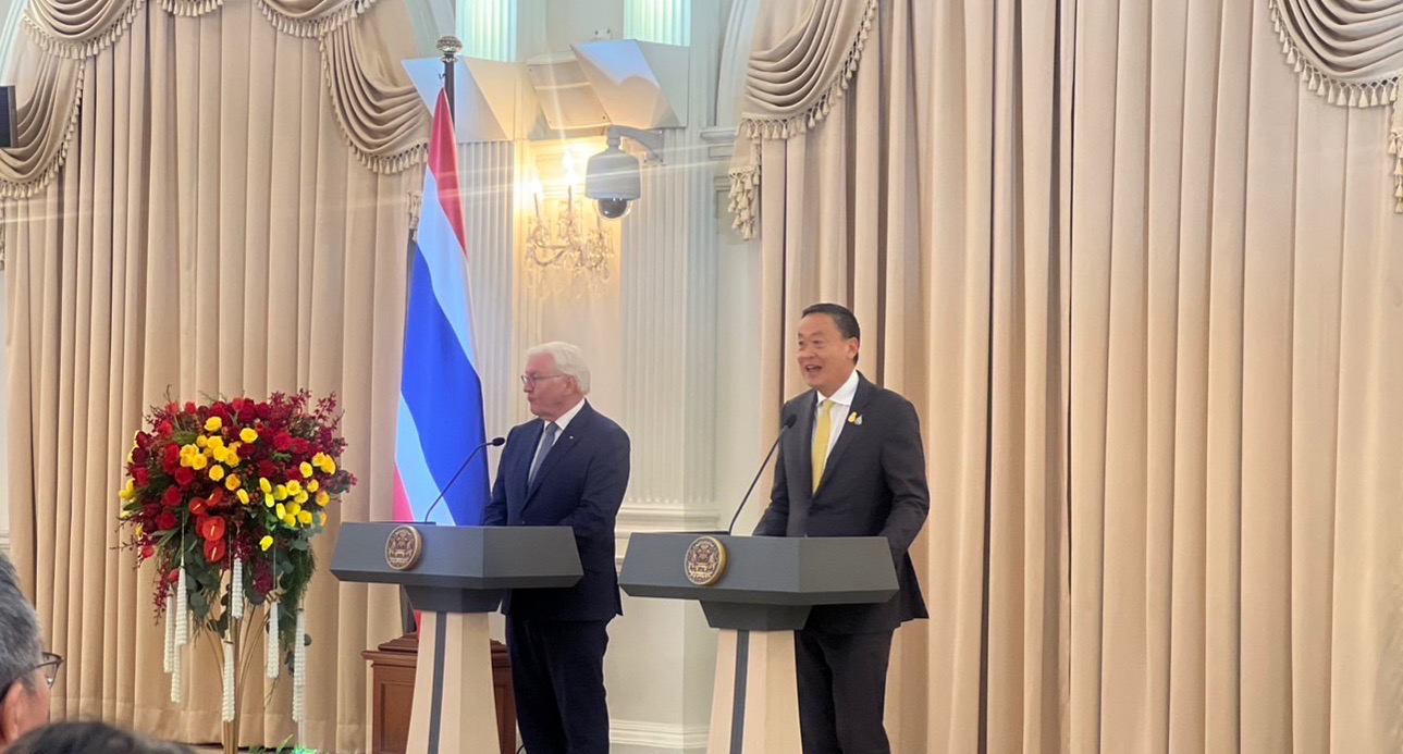 นายเศรษฐา ทวีสิน นายกรัฐมนตรีและรัฐมนตรีว่าการกระทรวงการคลัง และนายฟรังค์-วัลเทอร์ ชไตน์ไมเออร์ ประธานาธิบดีสหพันธ์สาธารณรัฐเยอรมนี ร่วมกันแถลงข่าว โดยนายกรัฐมนตรี กล่าวว่าการเยือนอย่างเป็นทางการครั้งนี้ ถือเป็นครั้งแรกของประธานาธิบดีเยอรมนีในรอบ 22 ปี ไทยและเยอรมนีมีความสัมพันธ์กันมากว่า 162 ปี โดยเยอรมนีเป็นคู่ค้ารายใหญ่ที่สุดในอียู ในขณะที่ไทยเป็นคู่ค้าอันดับที่ 3 ในอาเซียน ทั้งสองประเทศยังเห็นพ้องกำหนดเป้าหมายในการยกระดับความสัมพันธ์สู่การเป็นหุ้นส่วนเชิงยุทธศาสตร์