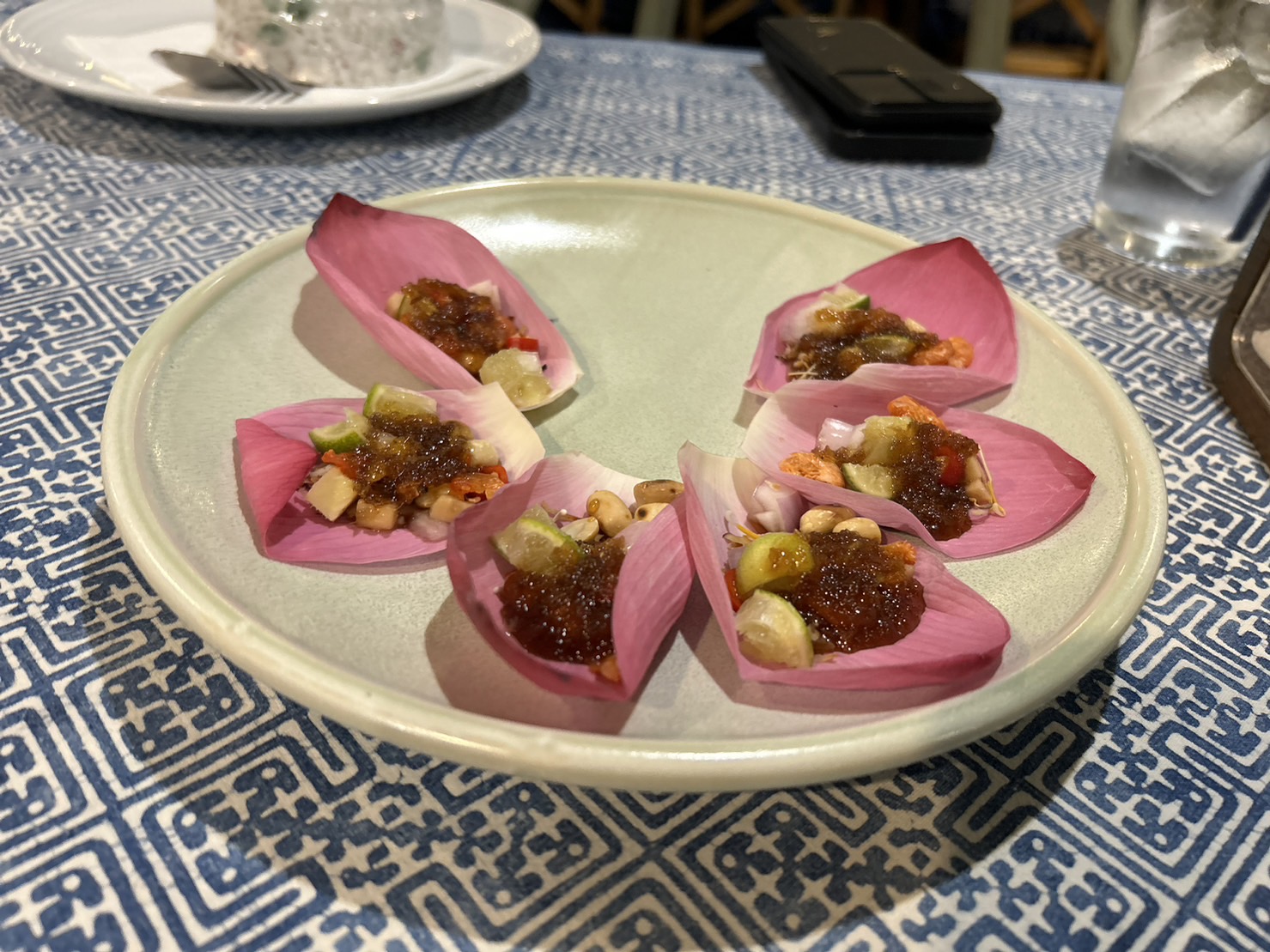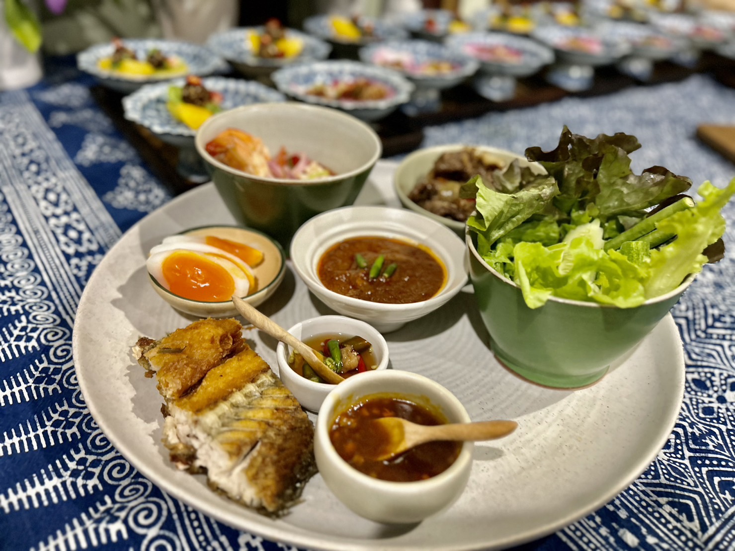 สำหรับอาหารที่มีการจัดเลี้ยงในวันนี้ ประกอบด้วย เมี่ยงกลีบบัว สะเดาปลาดุกน้ำปลาหวาน หลนปลากุเลา เกี้ยมฉ่ายต้มบ๊วยหมูสับ แกงส้มชะอม ไหลกุ้งสด ปลาเนื้ออ่อนทอดราดกระเทียม ยำรากบัว พะโล้ไข่เค็ม กุ้งเผา ทอดมันปลากราย ข้าวผัดปลาทู ผัด 3 เหม็น.-317.-สำนักข่าวไทย
