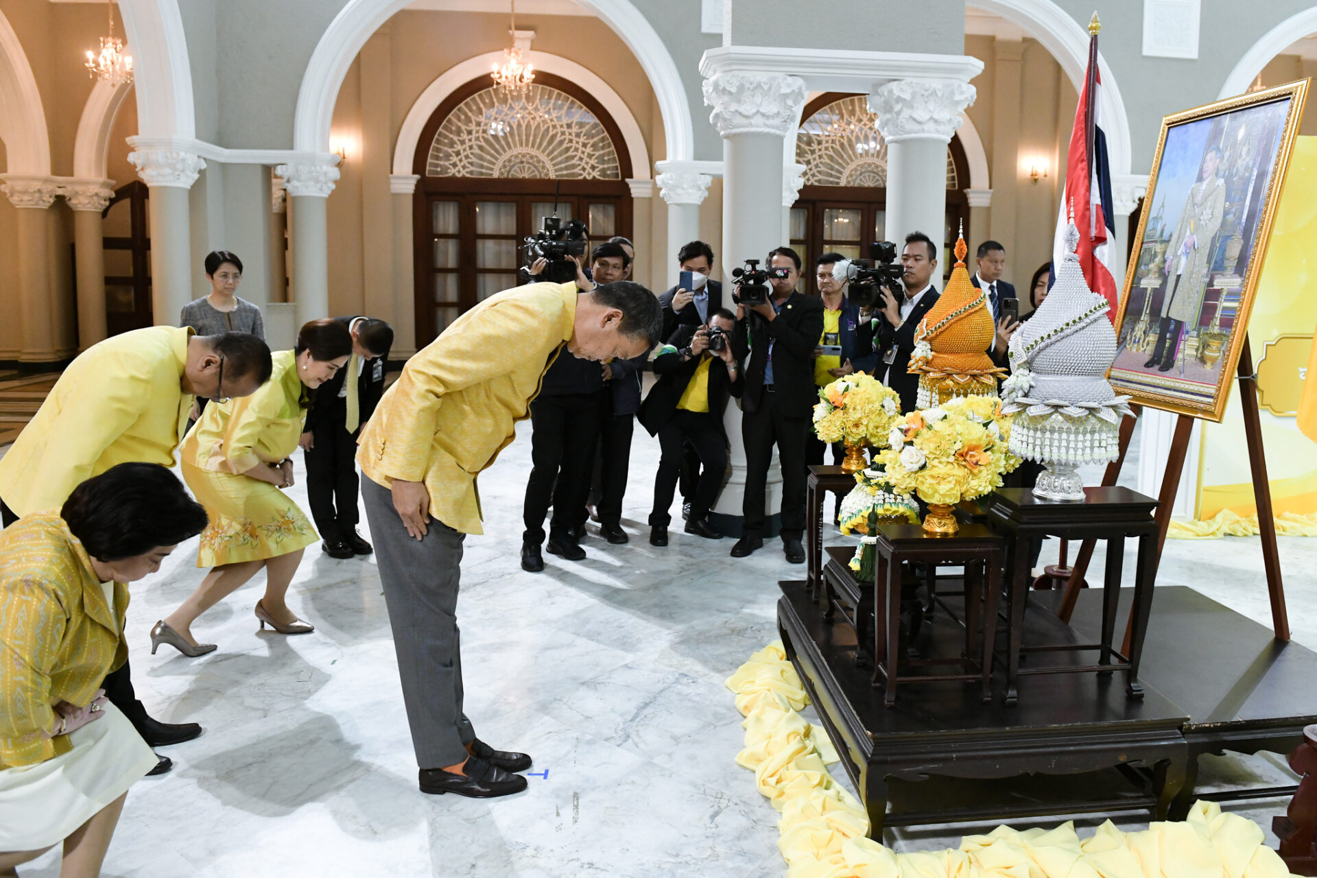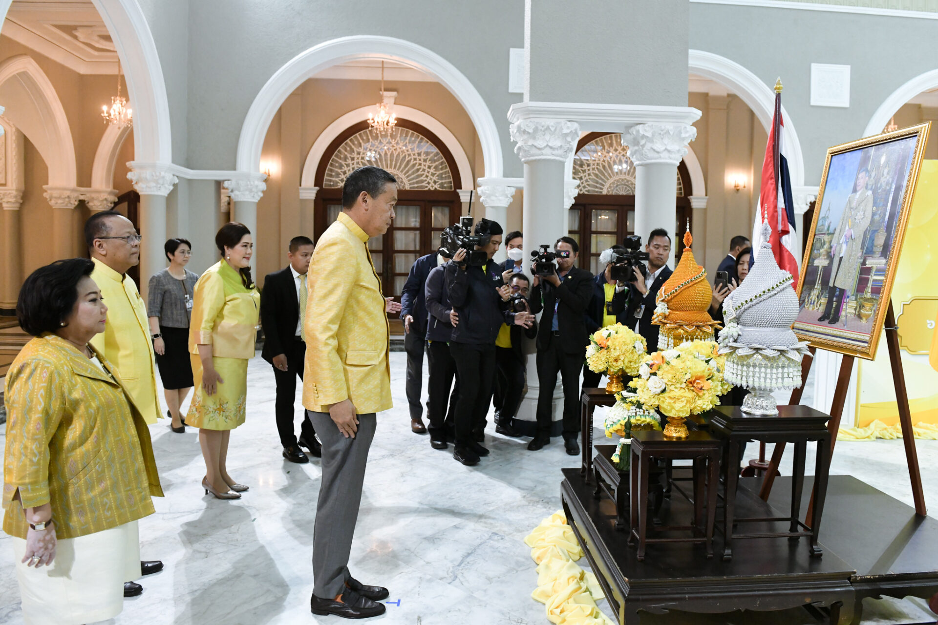 นายเศรษฐา ทวีสิน นายกรัฐมนตรีและรัฐมนตรีว่าการกระทรวงการคลัง เป็นประธานพิธีมอบตราสัญลักษณ์งานเฉลิมพระเกียรติพระบาทสมเด็จพระเจ้าอยู่หัว เนื่องในโอกาสพระราชพิธีมหามงคลเฉลิมพระชนมพรรษา 6 รอบ 28 กรกฎาคม 2567 ณ ตึกสันติไมตรี ทำเนียบรัฐบาล โดยมีผู้ร่วมงานประมาณ 160 คน ประกอบด้วย รัฐมนตรีประจำสำนักนายกรัฐมนตรี ปลัดสำนักนายกรัฐมนตรี ปลัดกระทรวง 19 กระทรวง ผู้ว่าราชการกรุงเทพมหานคร ปลัดกรุงเทพมหานคร ผู้บัญชาการเหล่าทัพ ผู้บัญชาการตำรวจแห่งชาติ สื่อมวลชน จาก 35 หน่วยงาน รวมทั้งนายผาติยุทธ ใจสว่าง รักษาการในตำแหน่งผู้อำนวยการใหญ่ บมจ.อสมท ส่วนผู้ว่าราชการจังหวัดทั้ง 76 จังหวัดเข้าร่วมพิธีผ่านระบบออนไลน์
