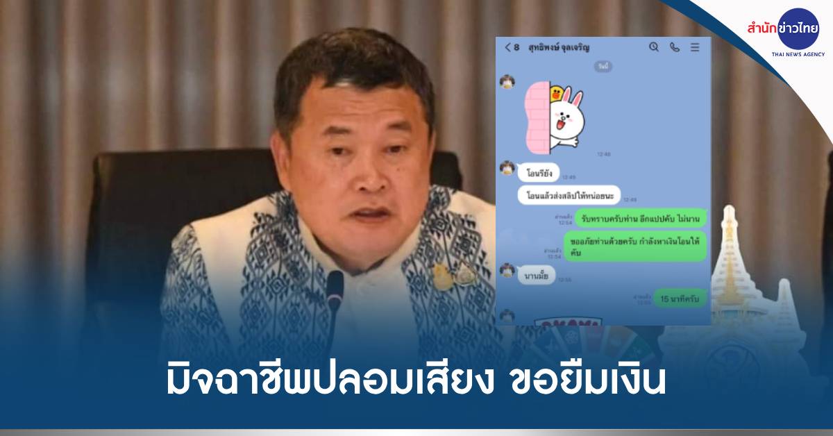 กทม. 3 ก.พ.- “มหาดไทย” เตือนภัยสังคม มิจฉาชีพปลอมเสียงปลัดมหาดไทย พร้อมใช้ไลน์ปลอม หวังหลอกนายอำเภอให้โอนเงิน แต่นายอำเภอรู้ทัน จึงบันทึกเสียงแล้วเดินทางไปลงบันทึกประจำวันทันที ยืนยัน ปลัดมหาดไทยไม่มีการยืมเงิน หรือขอให้โอนเงินอย่างแน่นอน