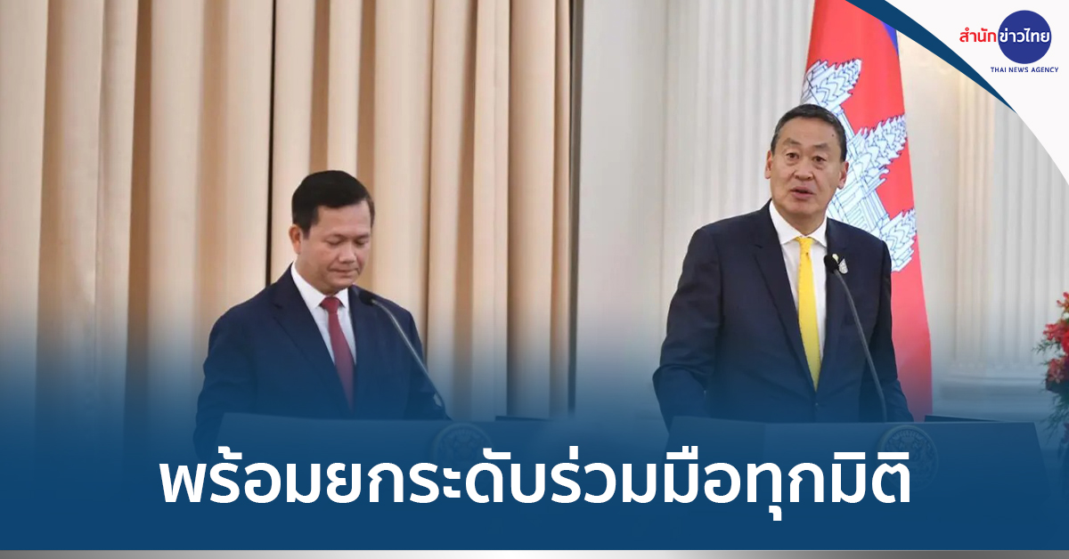 ทำเนียบรัฐบาล 7 ก.พ.-นายกฯ ไทย-กัมพูชาร่วมแถลงยกระดับสัมพันธ์สู่การเป็น “หุ้นส่วนเชิงยุทธศาสตร์” พร้อมส่งเสริมความร่วมมือทุกมิติ ด้านนายกฯ กัมพูชา ขอบคุณรัฐบาลไทยให้ความสำคัญแรงงานกัมพูชา พร้อมขอให้อำนวยความสะดวกกลับเยี่ยมบ้านช่วงเทศกาลสงกรานต์ตรงปีใหม่กัมพูชา