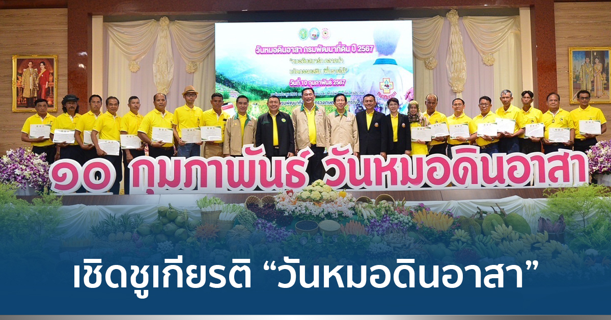 กรมพัฒนาที่ดิน 10 ก.พ.- “อนุชา” เชิดชูเกียรติ “วันหมอดินอาสา” ผู้เสียสละและฟันเฟืองสำคัญขับเคลื่อนงานพัฒนาที่ดิน หวังยกระดับสู่การเป็นผู้ผลิตและผู้ประกอบการ ขยายกำลังซื้อ สร้างเม็ดเงินสู่ภาคเกษตร