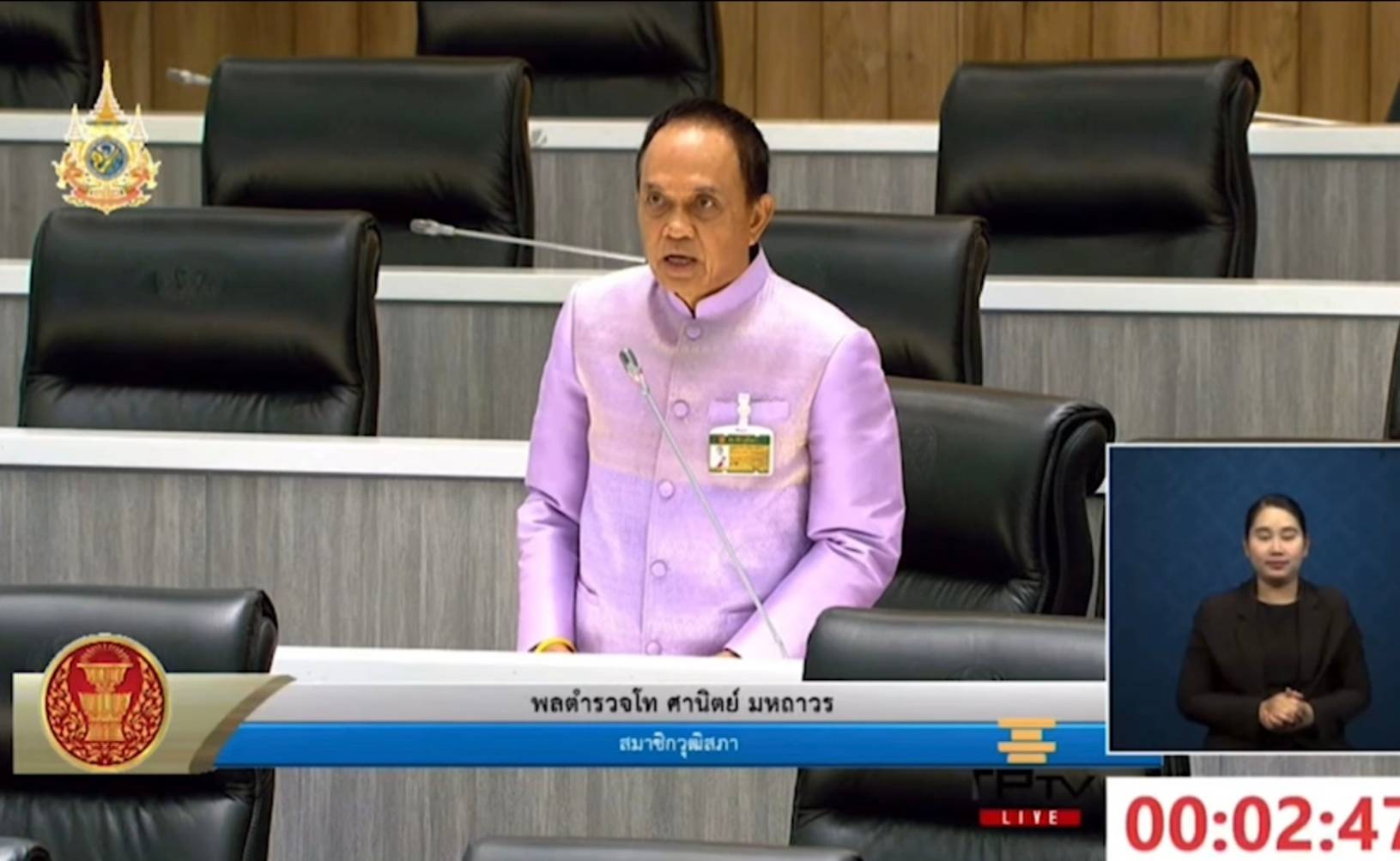 ขณะที่พล.ต.ท.ศานิตย์ มหถาวร สว. ลุกหารืออย่างดุเดือด ว่า เหตุการณ์ที่เกิดขึ้นเมื่อไม่กี่วันที่ผ่านมา สะเทือนใจท่านประธาน สะเทือนใจตนเป็นอย่างยิ่ง เชื่อหรือไม่ว่าเรื่องเหล่านี้ไม่ควรจะเกิดในแผ่นดินนี้ dลุ่มที่กระทำความผิดเหล่านี้ไม่เกรงกลัวกฎหมายเลย กฎหมายบ้านเมืองที่มีอยู่ และว่า “อีกประการหนึ่งพราะมันมีคนคอยหนุนหลัง รู้ข้อกฎหมายในการที่จะดำเนินการกับขบวนของสมเด็จพระเทพฯ ท่านเชื่อหรือไม่ว่าเวลานี้คนกล่าวหาตำรวจว่าล่าช้า ตำรวจทำงานตลอด 24 ชั่วโมง แต่ไปติดขัดที่การจะขอหมายค้นก็ขอไม่ได้ นางคนนี้ ผมใช้คำว่านางคนนี้ก็แล้วกัน เพราะอายุ 20 แล้ว บรรลุนิติภาวะแล้ว ไม่ใช่เด็กและเยาวชนแล้ว ได้รับการแนะนำว่าให้อยู่ในบ้าน ไม่ต้องไปไหน ตำรวจต้องมีหมายค้นเข้าไปค้นบ้านตำรวจไปขอหมายค้น นางคนนี้มีหมายจับอยู่ ปรากฏว่าไม่ได้รับอนุมัติให้ได้รับหมายค้นไปค้นบ้านเพื่อจับกุมนะท่านประธาน ท่านประธานเป็นผู้พิพากษามาก่อน ขนาดหมายค้นยังไม่ออกเลย ผมไม่ได้ตำหนิศาลอาญาธนบุรีนะ ผมพูดในหลักการว่าตำรวจไปขอแล้วแต่ไม่ได้ รวมทั้งหมายจับก่อนดำเนินการเรียบร้อยแล้วแต่ทำไม่ได้” พล.ต.ท.ศานิตย์ กล่าว