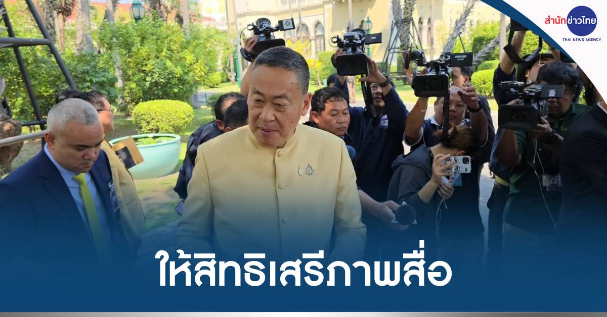 ทำเนียบ 13 ก.พ.-นายกฯ ยืนยันรัฐบาลให้ความยุติธรรมเรื่องสิทธิเสรีภาพของสื่อ ไม่มีการกลั่นแกล้งหลังนักข่าวถูกจับ ปมทำข่าวม็อบพ่นกำแพงวัง