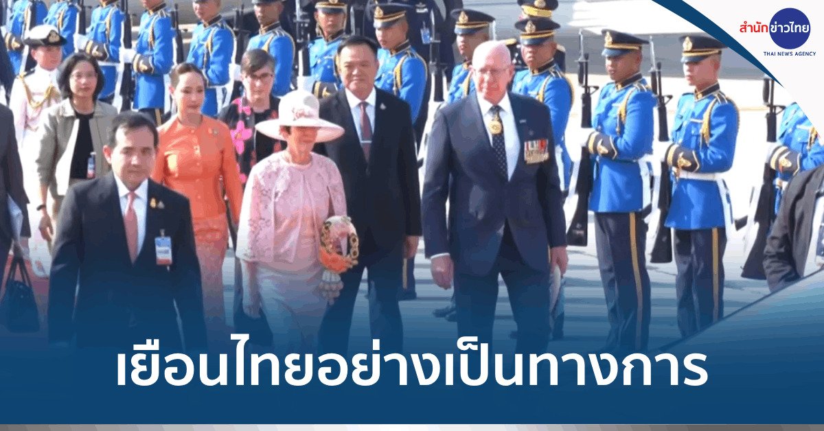 13 ก.พ. – ผู้สำเร็จราชการออสเตรเลีย พร้อมภริยา ถึงไทยแล้ว โอกาสเยือนอย่างเป็นทางการ ตามคำเชิญนายกรัฐมนตรี “อนุทิน” ผู้แทนรัฐบาลให้การต้อนรับ ขณะกำหนดการเยือน เตรียมเข้าเฝ้าในหลวง-สมเด็จพระสังฆราช พบ “เศรษฐา” หารือทวิภาคีการค้า-การลงทุน
