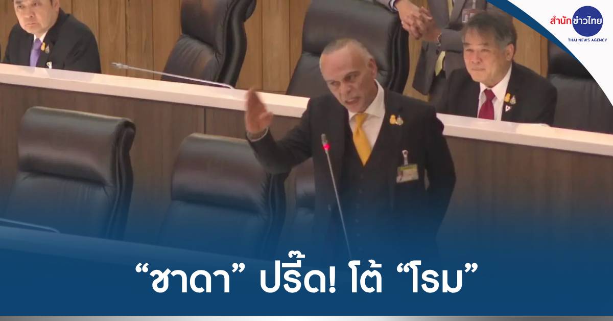รัฐสภา 14ก.พ.-สภาเดือดจัด! “โรม” ยกภาพ “ชาดา” ถ่ายกับกลุ่ม ศปปส. อ้างทำปลุกปั่นให้สถานการณ์ร้ายแรงเกินจริง ถามจะสร้างความปลอดภัยได้อย่างไรในเมื่อรัฐสร้างผีขึ้นมาเอง ทำ “ชาดา” โมโหจัด ลุกโต้เสียงสั่น ถ้าอยู่เบื้องหลังจริงสนุกกว่านี้ ลั่นอย่าเล่นใต้ดิน ยืนยันประเทศมีขบวนการล้มเจ้า ไล่รับไม่ได้ ให้ไปอยู่ประเทศอื่น