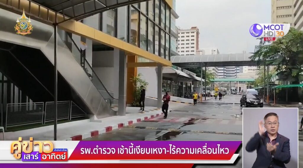ขณะที่บรรยากาศด้านหน้าอาคารมหาภูมิพลราชานุสรณ์ 88 พรรษา โรงพยาบาลตำรวจ สถานที่ที่กรมราชทัณฑ์นำตัวนายทักษิณ เข้ารักษาอาการป่วยที่ชั้น 14 ช่วงเช้าวันนี้ เงียบเหงา ยังไม่มีความเคลื่อนไหวใด ๆ ทั้งกลุ่มมวลชนต่างๆ ที่มีข่าวก่อนหน้านี้ว่าจะมาทำกิจกรรม รวมถึงรถพยาบาล มีเพียงสื่อมวลชนหลายสำนักที่มาติดตามทำข่าว และมีกำลังตำรวจนอกเครื่องแบบสังเกตการณ์อยู่รอบพื้นที่ ขณะที่หน้าสถาบันนิติเวช มีการนำกรวยมาตั้งห้ามจอดรถ และมีรถบัสโรงพยาบาล 3 คัน จอดเทียบอยู่บริเวณโรงอาหาร
