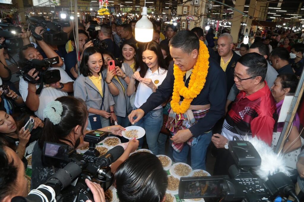 ขณะเดียวกันนายกฯ ยังสอบถามประชาชนที่มาจับจ่ายซื้อสินค้าว่า สส. ในพื้นที่ดูแลดี โดยประชาชน ตอบว่า “ดูแลดี” และในช่วงหนึ่งที่เดินตลาดมีชาวบ้านขอให้นายกฯ เซ็นชื่อบนเสื้อ ซึ่งนายกฯ เซ็นชื่อตนเองให้กับชาวบ้านบนหน้าอกด้านซ้าย