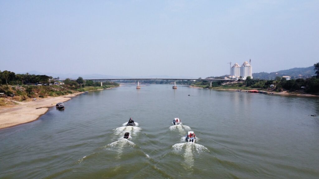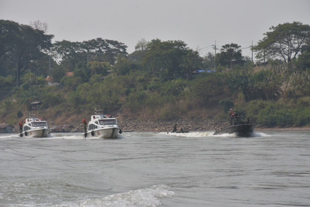 เมื่อวันที่ 16 กุมภาพันธ์ 2567 พลเรือตรี นรินทร์ ขาวเจริญ ผู้บัญชาการหน่วยเรือรักษาความสงบเรียบร้อยตามลำแม่น้ำโขง มอบหมายให้ นาวาเอกศราวุธ เถื่อนบุญ ผู้บังคับการหน่วยเรือรักษาความสงบเรียบร้อยสำหรับแม่น้ำโขง เขตเชียงราย เข้าร่วมกับกองบัญชาการทหาร แขวงบ่อแก้ว จัดการลาดตระเวนร่วมตามลำแม่น้ำโขง ณ สะพานมิตรภาพไทย – ลาว แห่งที่ 4 ตำบลเวียง อำเภอเชียงของ จังหวัดเชียงราย โดยมี พันโทปันยา แสงวิจิต รองหัวหน้ากองบัญชาการป้องกันความสงบ แขวงบ่อแก้ว เป็นประธานร่วมฝ่ายลาว