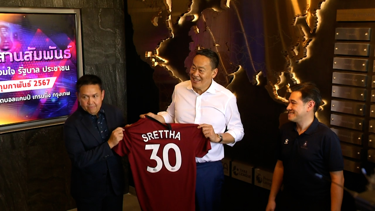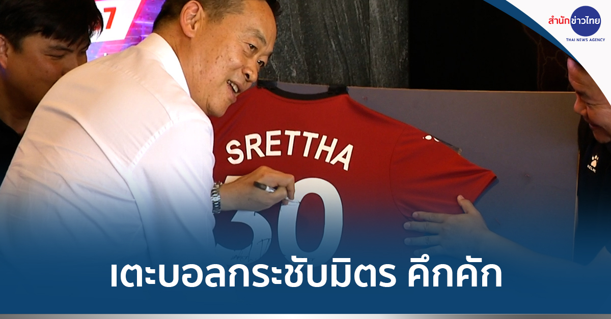 สนามอัลไพน์ 20 ก.พ. – บรรยากาศคึกคัก ฟุตบอลกระชับมิตรพรรคร่วมรัฐบาล-สื่อมวลชน นายกฯ รับมอบเสื้อสกรีนข้อความ “SRETTHA 30” พร้อมลงลายเซ็น