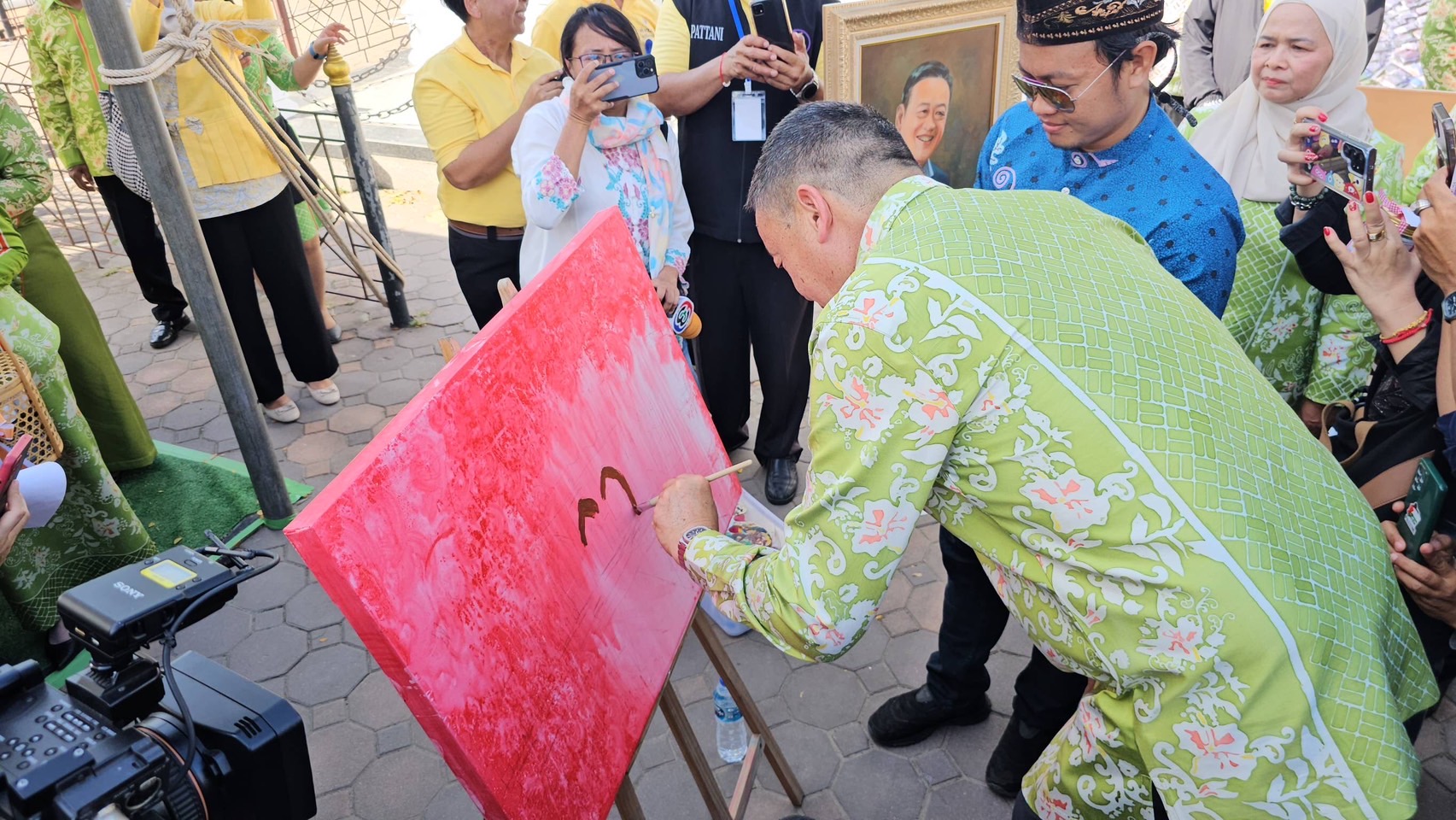 ผู้สื่อข่าวรายงานว่า สุไลมาน ยาโม ศิลปินดับไฟใต้ด้วยปลายพู่กัน มอบภาพวาดนายกรัฐมนตรี ให้นายกรัฐมนตรี และให้ลงสีภาพวาดที่ขึ้นโครงเอาไว้ นายกรัฐมนตรีรับมอบของที่ระลึกจากตัวแทน และเดินทางไปเยี่ยมชมบ้านขุนพิทักษ์.- 313.-สำนักข่าวไทย