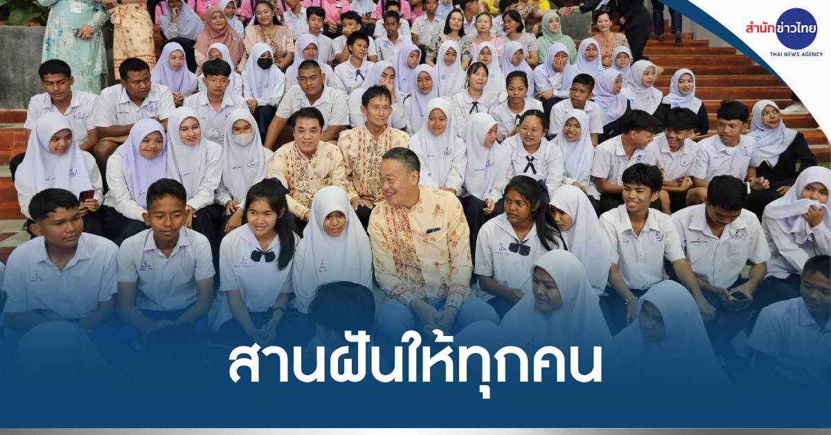 ตัวแทนเยาวชนยังเสนอให้รัฐบาล ทำให้ประชาชนลดความเหลื่อมล้ำมีสิทธิพิเศษรับเสรีภาพ อยากให้ยะลาเป็นเมืองท่องเที่ยว มีชาวต่างชาติเข้ามาท่องเที่ยว พร้อมถามนายกรัฐมนตรีว่านายกรัฐมนตรีมีความฝันอะไรในขณะที่อายุเท่ากับพวกเรา ซึ่งนายกรัฐมนตรี ตอบว่า สิ่งที่อธิบายหลายเรื่อง ขึ้นอยู่กับความฝันและแรงบันดาลใจของเยาวชน วันนี้ตนมาในฐานะรัฐบาล หน้าที่ของตนคือใครฝันอยากเป็นอะไร เป็นหน้าที่ของรัฐบาลที่จะต้องสานฝันให้ทุกคนได้เข้าถึงโอกาส ได้รับการสนับสนุนอย่างเสมอภาค เท่าเทียม เพื่อให้เป็นจุดที่ทุกคนมีความฝันที่อาจจะเป็น หลาย ๆ อย่างที่บอกมาอยู่ในแผนงานของรัฐบาลอยู่แล้ว ไม่ว่าจะเป็นการสร้างสนามบินยะลา การส่งเสริมการท่องเที่ยว การเข้าถึงการศึกษาได้อย่างเท่าเทียม