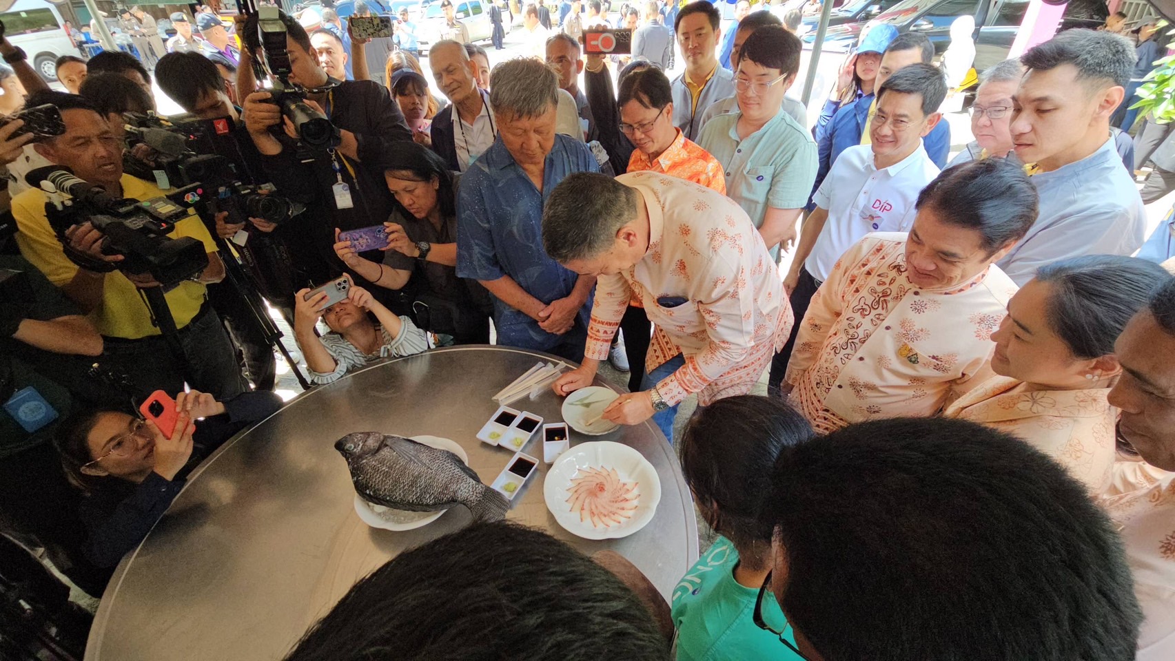 จากนั้นนายกรัฐมนตรีได้ลองชิมปลานิลสายน้ำไหล แบบแร่เป็นซาซิมิ ก่อนบอกว่าอร่อย โดยนายกรัฐมนตรี กล่าวย้ำว่า ต้องขยายฐานการผลิตออกไปอีก เพราะปลานิลสายน้ำไหล กลายป็นปลาที่มีความต้องการมาก แต่การขยายไม่ใช่การขยายแค่องค์ความรู้ หรืองานวิจัยอย่างเดียว ที่สำคัญคือ เรื่องแหล่งเงินทุน ที่ต้องให้ธนาคารเพื่อการเกษตรและสหกรณ์ หรือ ธกส. เข้ามาสนับสนุนเรื่องนี้อย่างเต็มตัว ซึ่งต้องรีบทำ มิเช่นนั้นจะเสียโอกาส โดยเรื่องนี้คิดว่าจะเป็นหนึ่งในปัจจัยที่ทำให้ชีวิตการเป็นอยู่พี่น้อง 3 จังหวัดชายแดนใต้ดีขึ้น