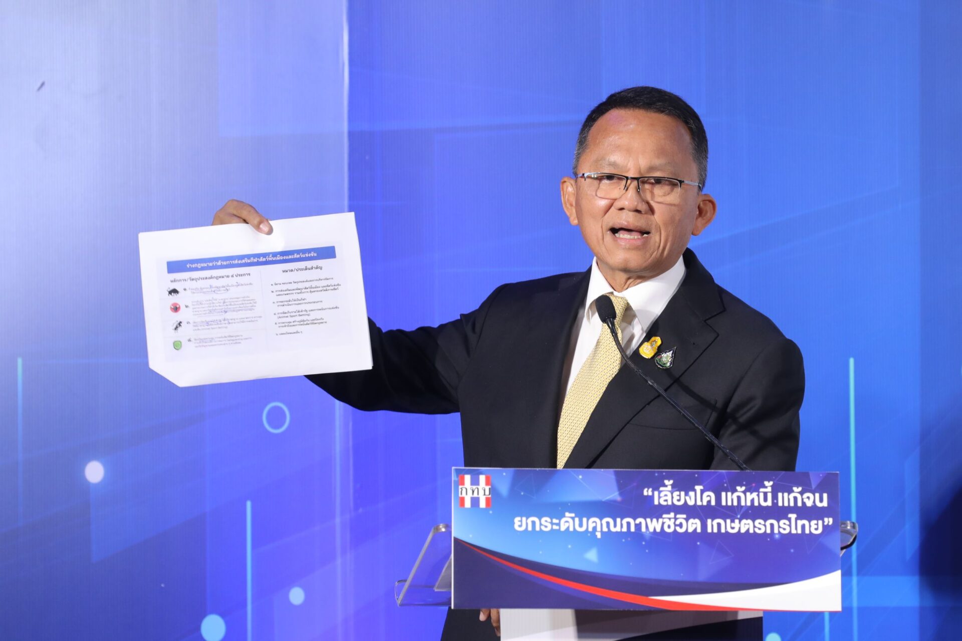 “จากนี้ผมจะส่งเสริมทำใบเพ็ดดีกรีให้กับสัตว์ เพื่อเพิ่มมูลค่าให้กับสัตว์ ซึ่งเป็นการนำของประเทศออสเตรเลีย มาปรับใช้ ที่มีการเลี้ยงม้าแข่ง ทำให้ตัวแชมป์มีมูลค่าสูงถึง 10 ล้านเหรียญ หรือ 350 ล้านบาท นอกจากนี้ ผมยังได้เตรียมร่างกฎหมายส่งเสริมปศุสัตว์ด้วย เพราะปัจจุบันมีการแข่งขันถูกกฎหมาย ทั้งม้า-วัว แต่ภาครัฐ ไม่ได้ภาษีเข้ารัฐ ผมจึงทำกฎหมาย เพื่อให้เงินเหล่านั้น สามารถกลับมาเป็นประโยชน์กับประชาชน เพราะทุกวันนี้ กีฬาสัตว์ถูกกฎหมาย แต่ภาครัฐไม่ได้ประโยชน์ ดังนั้น ต้องนำกฎหมายเข้ามา ซึ่งเป็นการสร้างภูมิคุ้มกัน และส่งเสริมการท่องเที่ยว โดยเป็นการทำให้ครบวงจร เพราะไม่อย่างนั้น ประชาชนต่างจังหวัด จะถูกทิ้งห่างไปเรื่อยๆ พร้อมขอยืนยันว่า ผมไม่สนับสนุนการเล่นพนัน แต่สนับสนุนการเลี้ยงสัตว์ เพื่อสร้างรายได้” นายสมศักดิ์ กล่าว.-316 .-สำนักข่าวไทย