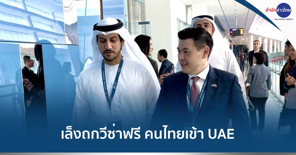 นายจักรพงษ์ ยืนยันว่า วีซ่าฟรีสำหรับคนไทย ที่จะเข้า UAE เป็นเรื่องที่ต้องพิจารณา เพราะเป็นเป้าหมายหลักของรัฐบาลอยู่แล้วในการเพิ่ม Power ให้กับพาสปอร์ตของไทย ซึ่งเรื่องนี้จะต้องมีการหยิบยกขึ้นมาคุยกับทาง UAE เพื่อที่จะได้มีการเปิดวีซ่าฟรีอย่างเป็นการถาวรซึ่งกันและกัน แต่ยอมรับว่าต้องใช้เวลา เพราะต้องมีการดูรายละเอียดในหลายๆ เรื่องซึ่งต้องมีการคุยกันตลอด.-316.-สำนักข่าวไทย