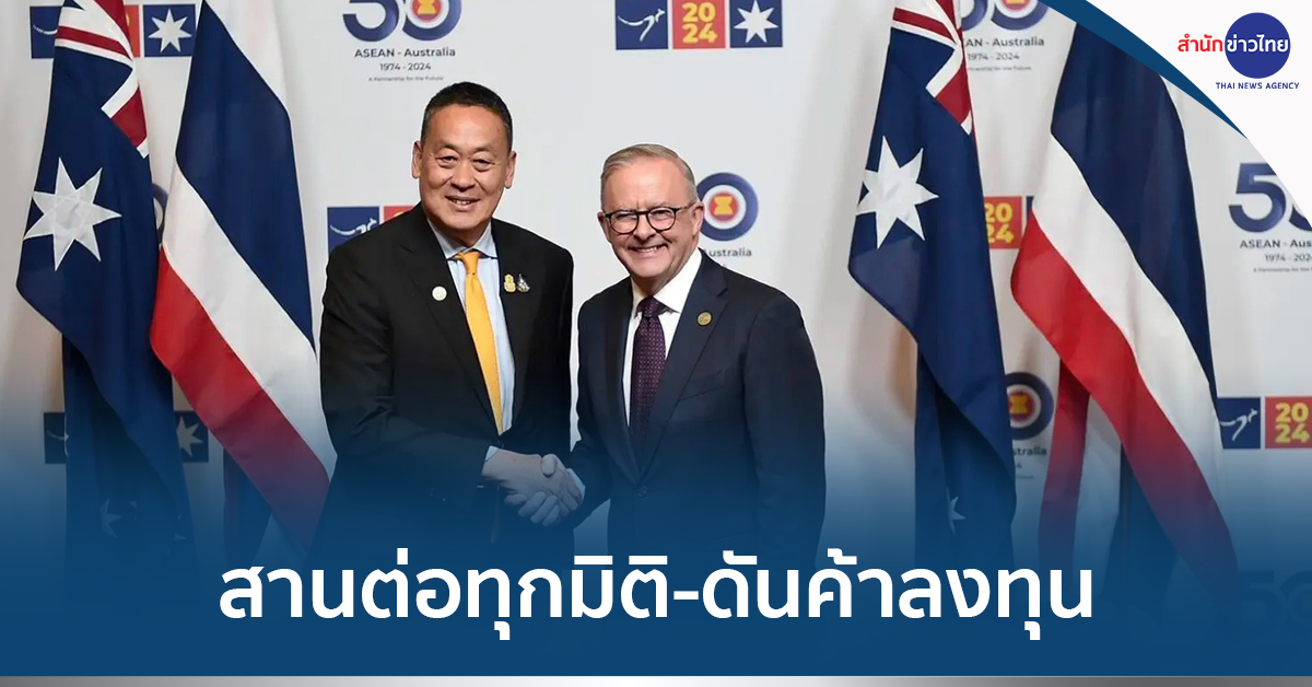 ออสเตรเลีย 5 มี.ค.- “เศรษฐา” หารือนายกฯ ออสเตรเลีย สานต่อความเป็นหุ้นส่วนทางยุทธศาสตร์ ผลักดันการค้าการลงทุน แลกเปลี่ยนเทคโนโลยีและนวัตกรรม ขอพิจารณาจ้างงานชั่วคราวเกษตรกรไทย