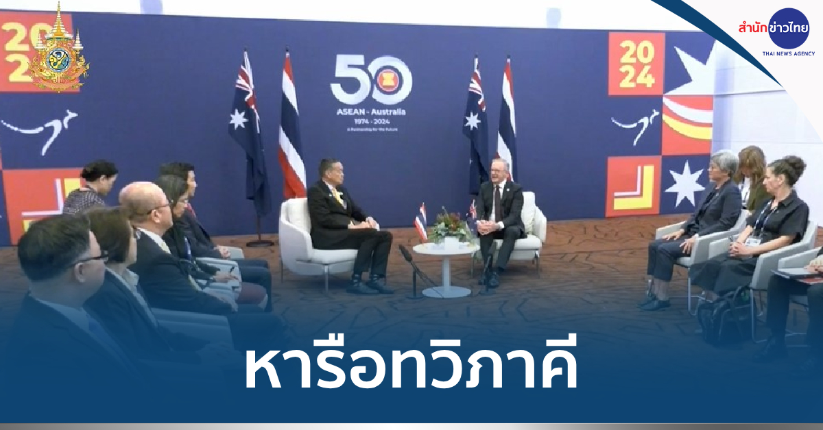 ออสเตรเลีย 5 มี.ค. – นายกรัฐมนตรีหารือทวิภาคีกับนายกรัฐมนตรีออสเตรเลีย และผู้นำประเทศต่างๆ รวมถึงผู้บริหารภาคเอกชน ก่อนเข้าร่วมการประชุมสุดยอดอาเซียน สมัยพิเศษ ฉลองวาระครบรอบ 50 ปี อาเซียน-ออสเตรเลีย ในวันพรุ่งนี้ ณ นครเมลเบิร์น .-สำนักข่าวไทย
