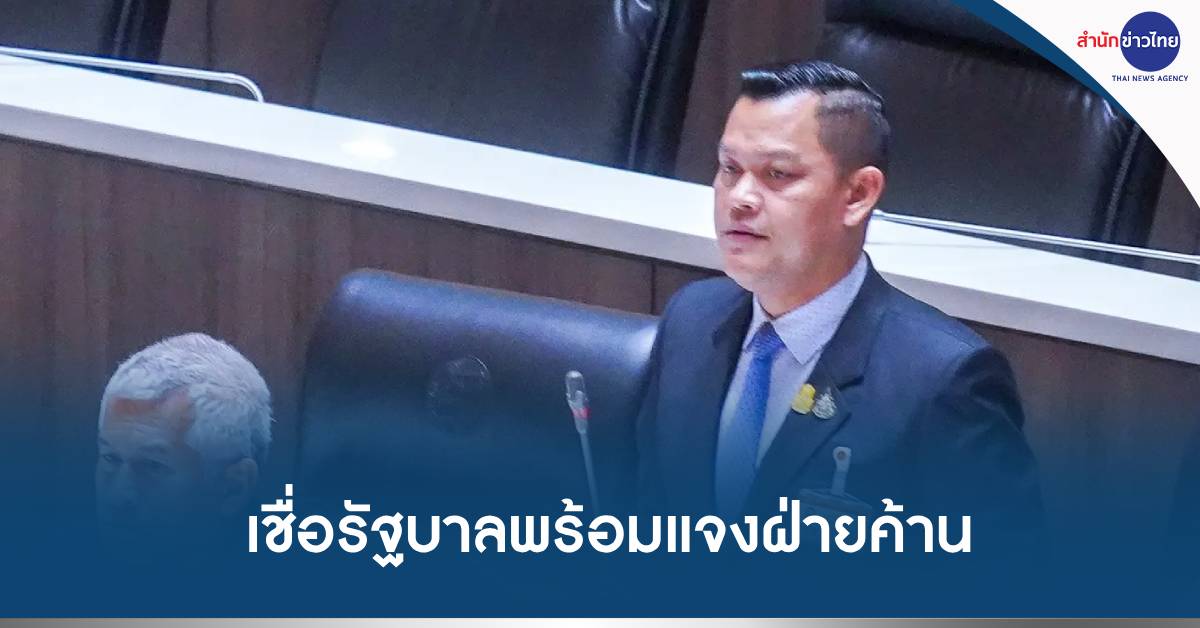 พรรครวมไทยสร้างชาติ 7 มี.ค.-“ธนกร” มั่นใจรัฐบาลพร้อมแจงฝ่ายค้าน หลังจ่อยื่นซักฟอกไม่ลงมติ เชื่อ ใช้เวทีสภาอธิบายผลงานให้ประชาชนเข้าใจ แนะอภิปรายสร้างสรรค์ ไม่ผลิตวาทกรรม หวังตีกินการเมือง