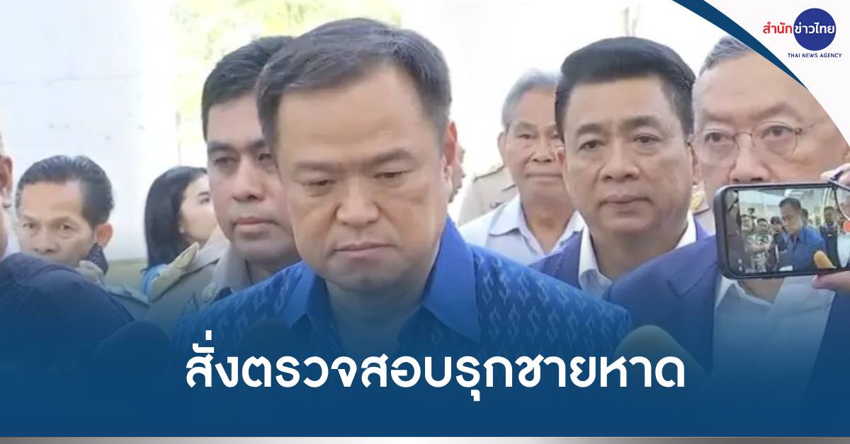 ศรีสะเกษ 8 มี.ค.-“อนุทิน” เผยสั่งหน่วยงานตรวจสอบกรณีรุกล้ำชายหาดสาธารณะภาคใต้แล้ว โดยเฉพาะที่ภูเก็ต เรียกตัวผู้ว่าฯกลับมาดำเนินการด่วน เตรียมยกระดับตรวจสอบจังหวัดชายทะเลทุกจังหวัด