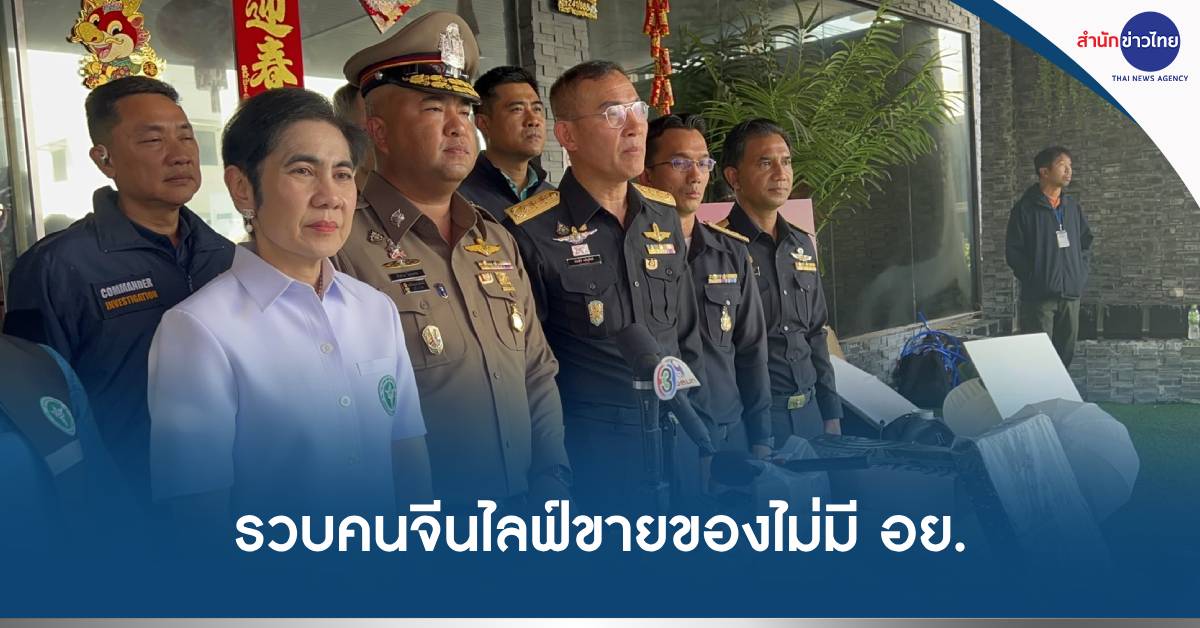 กรุงเทพฯ 13 มี.ค.- สคบ. จับมือ อย.-สตม. บุกจับบริษัทขายสินค้าไม่มี อย. ขณะใช้อินฟูล 2 คนจีนไลฟ์ขายสินค้า แอบอ้างผลิตในไทยหลอกขายชาวจีน พบผู้เสียหายอื้อ เร่งขยายผล
