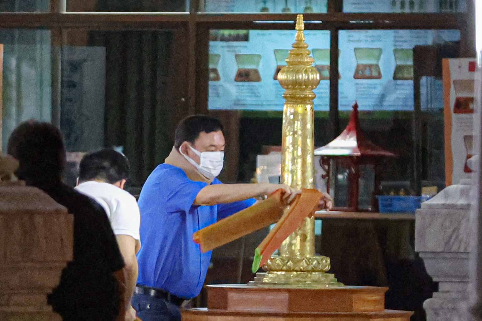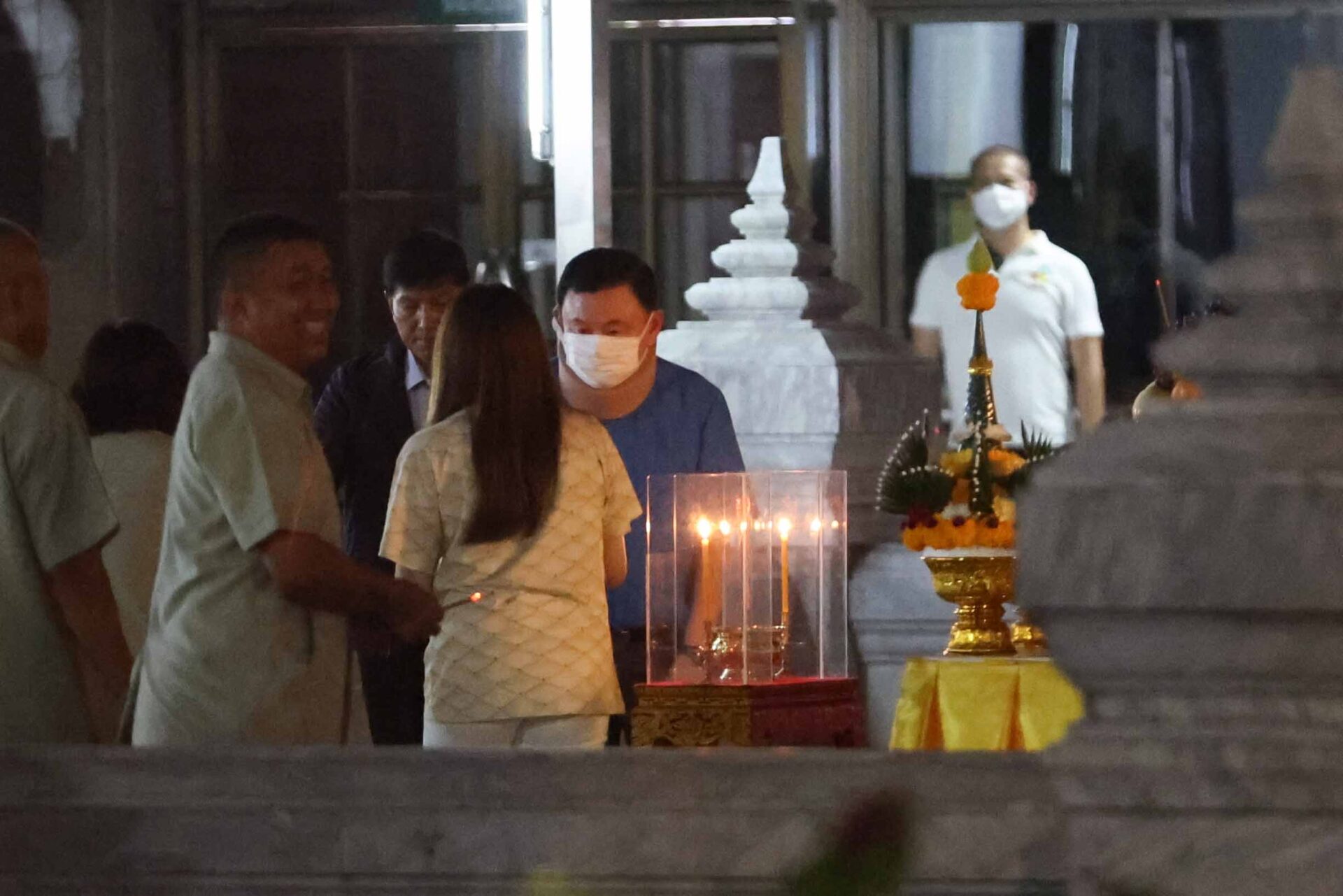 ผู้สื่อข่าวรายงานว่า เมื่อเวลา 5.19 น. นายทักษิณ ชินวัตร อดีต นายกรัฐมนตรี พร้อมน.ส.แพทองธาร ชินวัตร บุตรสาว หัวหน้าพรรคเพื่อไทย และนายปิฎก สุขสวัสดิ์ บุตรเขย เดินทางมาสักการะศาลหลักเมือง กรุงเทพมหานคร โดยเดินเข้าประตูด้านถนนหลักเมือง บริเวณด้านข้างกระทรวงกลาโหม โดยนายทักษิณใส่เสื้อเชิ้ตแขนสั้นสีน้ำเงิน ที่เป็นสีมงคลประจำวันนี้ ใส่แมสก์และเฝือกอ่อนที่คอ