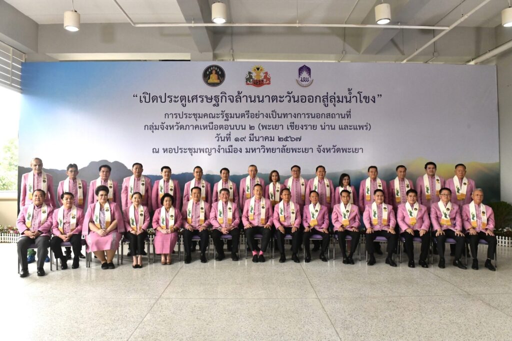 จ.พะเยา 19 มี.ค.-“เศรษฐา” นำทีม ครม.สวมเสื้อฝ้ายย้อมครั่งสีชมพูเข้มอมม่วงลายดอกสารภีประชุม ครม.สัญจรพะเยา เตรียมพิจารณาโครงการและยุทธศาสตร์การลงทุน 4 จังหวัดภาคเหนือตอนบน 11 โครงการ วงเงิน 90,558 ล้านบาท
