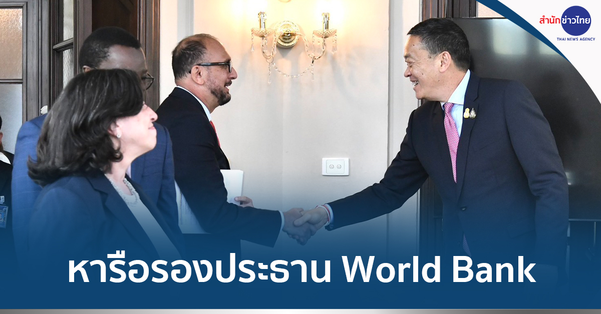 ทำเนียบ 21 มี.ค.- นายกฯ หารือ รองประธาน World Bank ย้ำความพร้อมของไทยในการเป็นเจ้าภาพ 2026 Annual Meetings พร้อมหารือแนวทางส่งเสริมความร่วมมือด้านการศึกษา แรงงาน และการบริหารจัดการน้ำ
