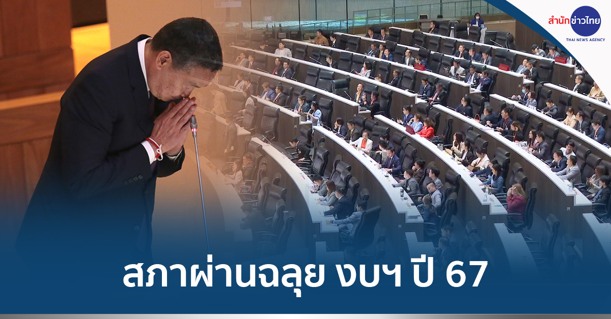 รัฐสภา 22 มี.ค.- สภาฯ ฉลุย! 40 ชั่วโมง ผ่านงบประมาณปี 2567 ด้านนายกฯ ขอบคุณทุกฝ่ายช่วยทำงานแข็งขัน รับปากจะใช้เงินให้คุ้มค่า-โปร่งใส-เกิดประโยชน์สูงสุด เพื่อพัฒนาประเทศทุกด้าน ขณะที่วุฒิสภาเตรียมรับไม้ต่อ ประชุมทันที 26 มี.ค.นี้